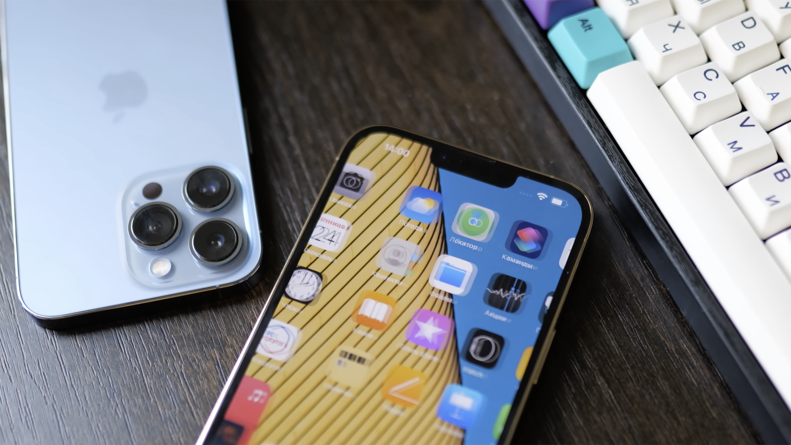 Диагональ экрана iPhone 13 Pro составляет 6,1 дюйм, iPhone 13 Pro Max – 6,7 дюйма. Основные камеры смартфонов примечательны сенсорами с большей площадью и более светосильной оптикой, в сравнении с предшествующими 12 Pro и Pro Max. Добавилась и поддержка съёмки в формате Apple ProRes. Сверхширокоугольный модуль обзавёлся режимом макросъёмки, а телеобъектив – 3-кратным оптическим зумом. Дизайн почти не изменился в сравнении с iPhone 12 Pro – помимо уменьшенной «чёлки» незначительно изменились габариты, блок задних камер стал выступать чуть сильнее, а ещё изменились расцветки.