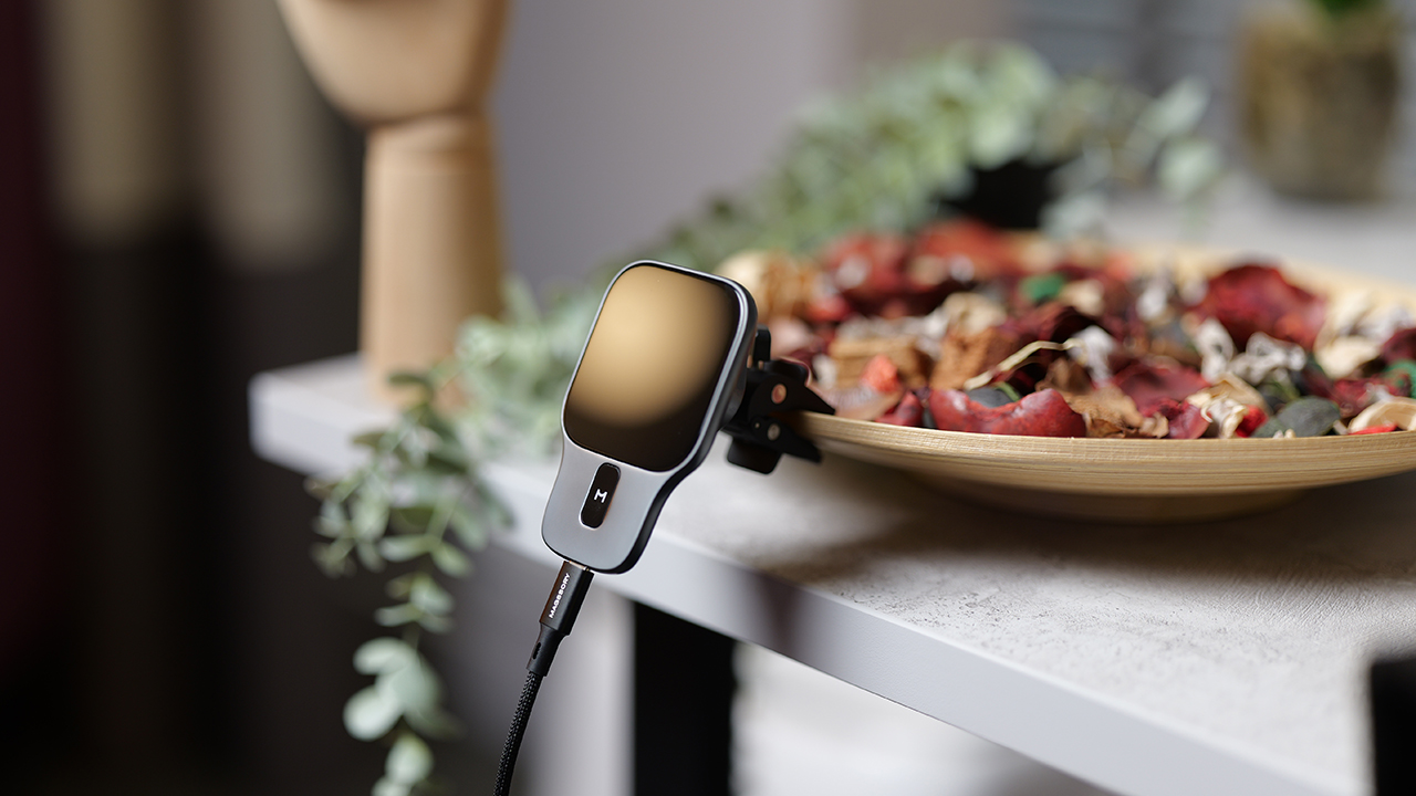 За чёрным стеклянным фасадом скрываются 16 неодимовых магнитов N52, которые держат смартфон с усилием в 2,5 кг на отрыв. Этого достаточно, чтобы iPhone Pro Max даже не шелохнулся, когда вы решите проверить подвеску на трамвайных путях. Максимальная мощность беспроводной зарядки составляет 15 Вт – это фактически гарантия того, что процент заряда смартфона будет расти, даже если экран работает на максимальной яркости, пока навигатор используется в паре с активным стримингом музыки.