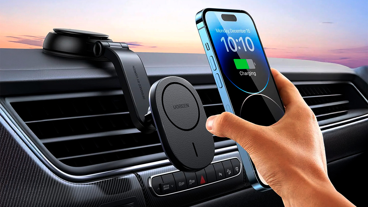 Ugreen CD345 из коробки обладает всеми видами креплений: присоска позволит закрепить его на стекле или торпедо, а защелка может накрепко вцепиться в решётку дефлектора. Сам же смартфон поднесённый к платформе притянется Силой. Никакого джедайства, сила в данном случае – магнитная, а мощные неодимовые магниты, сделанные специально для MagSafe-совместимых устройств, обеспечат надёжное сцепление даже при езде по неровной дороге.