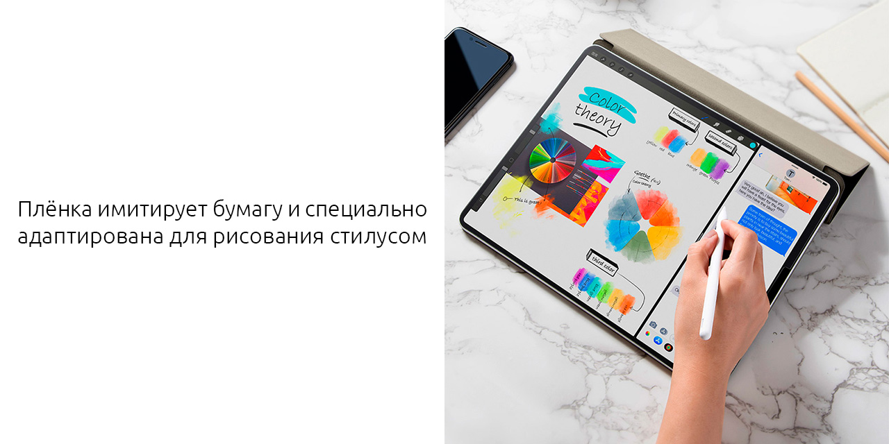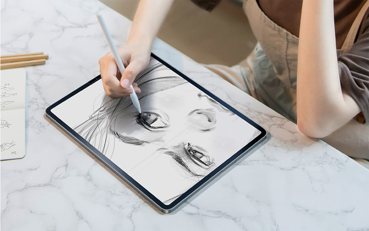О возможностях, которые предоставляют современные приложения для iPad, не могли мечтать даже величайшие художники прошлого, но глянцевый экран планшета, к сожалению, не даёт тех же ощущений, которые свойственны обычному листу бумаги. Исправить это призвана уникальная матовая плёнка от Baseus, которая не только достоверно имитирует фактуру, но и обладает похожим коэффициентом трения. Кроме того, она предотвращает появление отпечатков и разводов на дисплее, позволяя реже протирать экрана, а для датчиков и фронтальной камер предусмотрен специальный вырез.