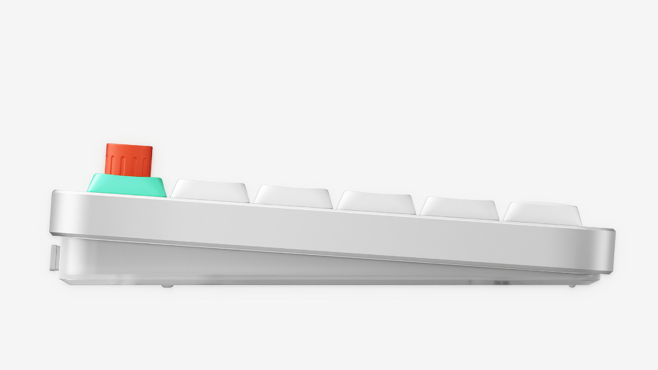 Перед нами 75% ANSI раскладка – 84 клавиши, аккуратные стрелки и нужные системные кнопки, но без бесполезного “поля для парковки самолётов”, как на полноразмерных моделях. Компактность – 318,9 × 128,9 мм, а весит она всего 724 грамма. Это, на секундочку, легче многих планшетов. Верхняя часть выполнена из алюминия – холодная, прочная, премиальная, нижняя – из ABS, чтобы конструкция не была избыточно тяжёлой. Сверху видим строгую алюминиевую плоскость, а снизу – приятная эргономичная подложка. Визуально клавиатура смотрится как аксессуар из фильмов про космических инженеров: минимализм, но с характером.