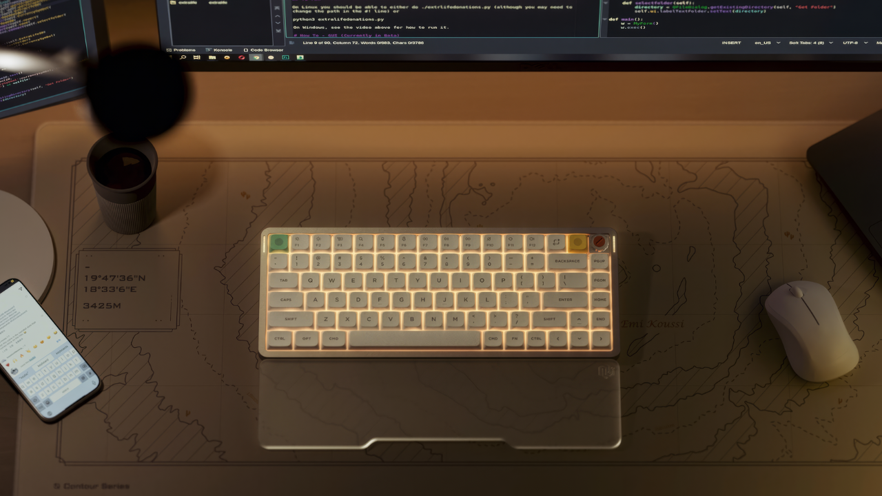 Одна из фишек Air75 V3 – это «крутилка» для регулировки громкости. Выглядит она стильно, работает мягко, и по ощущениям напоминает миниатюрный потенциометр из винтажной аппаратуры, а в сочетании с алюминием она добавляет чуточку эстетики гаджетов Teenage Engineering. Крутилка легко приглушит музыку, переключит трек или сделает Zoom-конференцию тише, когда кто-то решил заесть совещание чипсами. Это то самое маленькое дополнение, которое превращает клавиатуру из просто “девайса для печати” в рабочий инструмент.