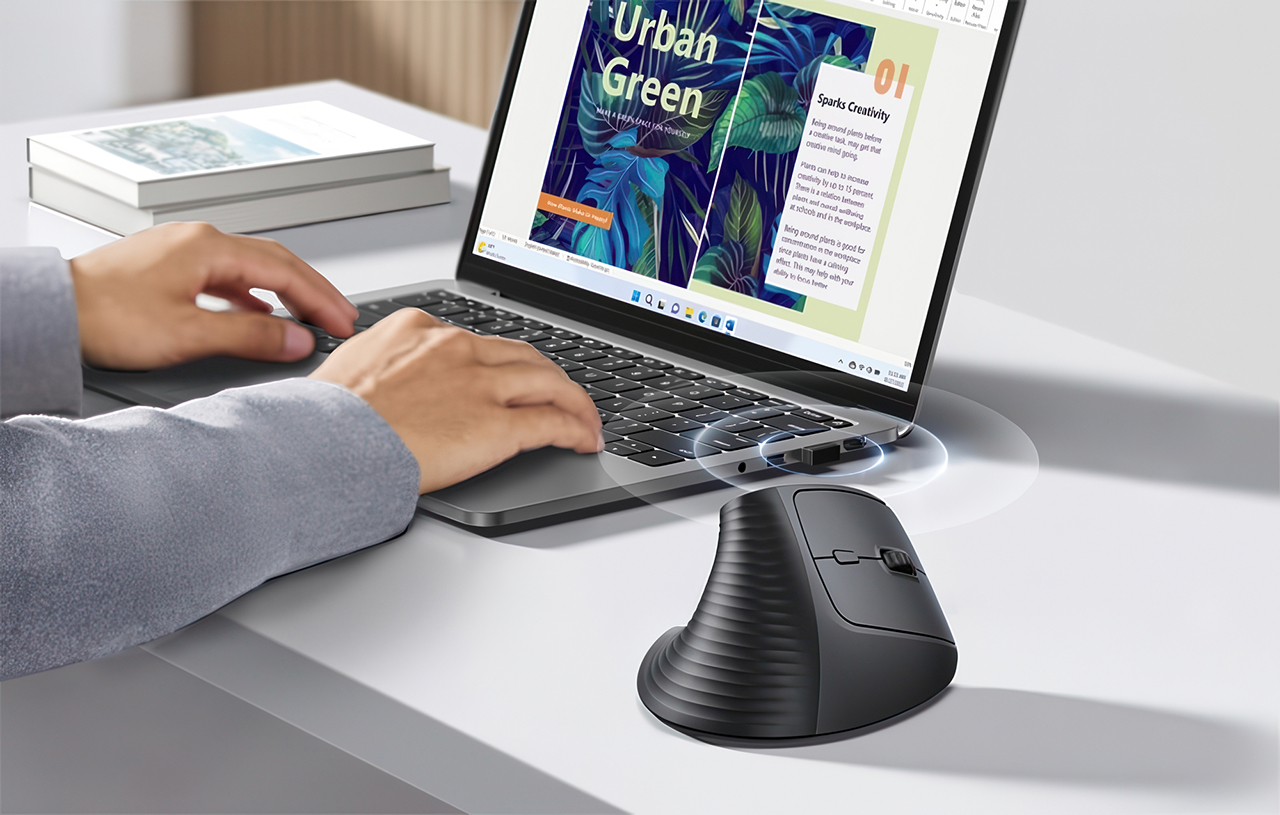 Впервые взяв в руки беспроводную вертикальную модель UGREEN M571, сразу представляешь себя пилотом легендарного боевого робота Гандама, настолько необычно и футуристично она выглядит! И у этого есть причина: пока пользователь берёт её в руки и вступает в бой с захватчиками цифрового мира, мышь, благодаря своему особому дизайну, защищает его от туннельного синдрома: рука помещается в оптимальное положение под углом в 57 градусов, не накапливая напряжение даже при продолжительной работе или виртуальной игровой сессии.