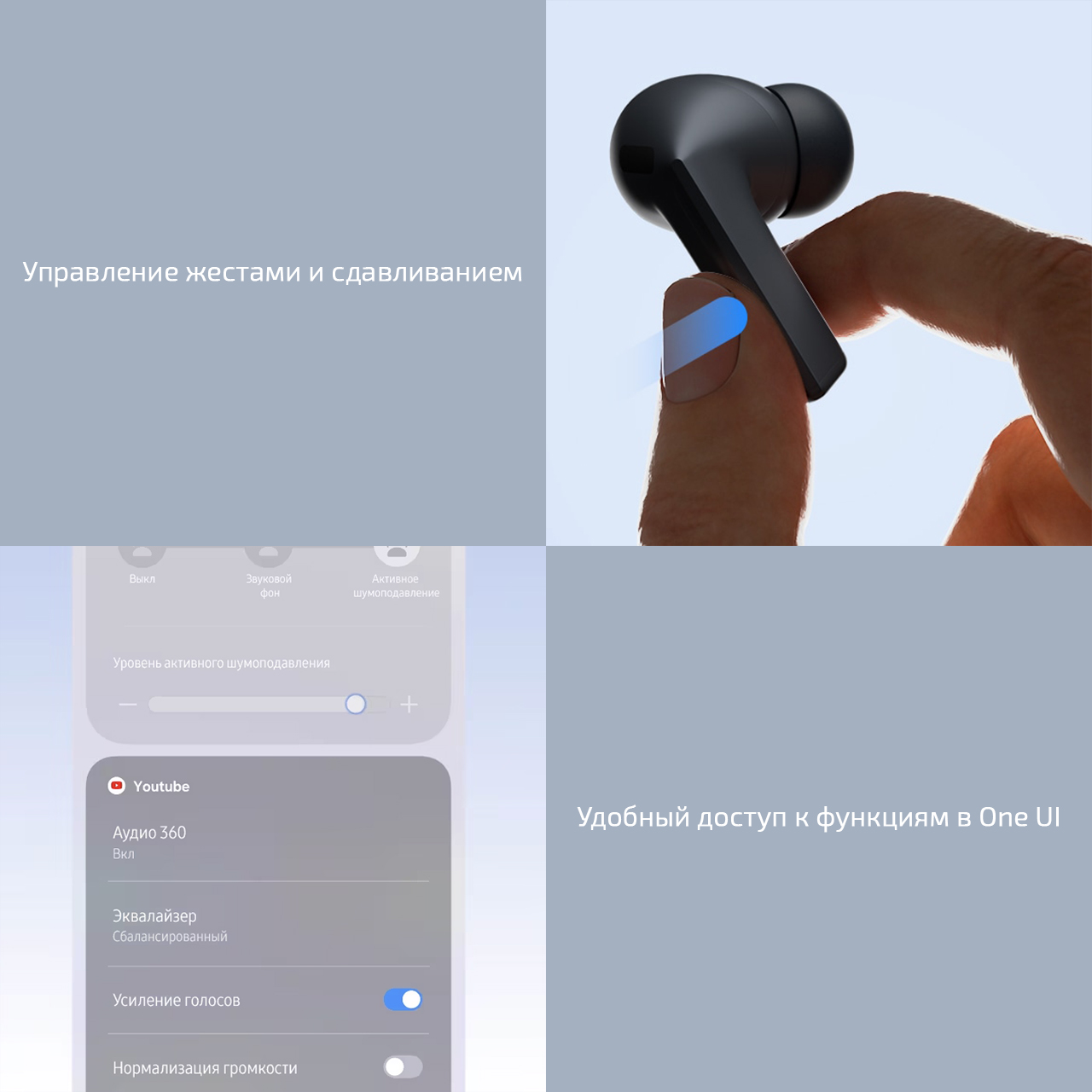 Galaxy Buds3 FE легко подстраиваются под привычки пользователя. Сенсорные области и реакция на сдавливание позволяют переключать треки, отвечать на звонки и регулировать громкость одним касанием. Подключение к смартфону происходит быстро и стабильно, а сопряжение с устройствами Galaxy происходит автоматически. Кроме того, все основные настройки выведены в пункт быстрого доступа, а автоматическое переключение между разными устройствами экосистемы Samsung происходит бесшовно.