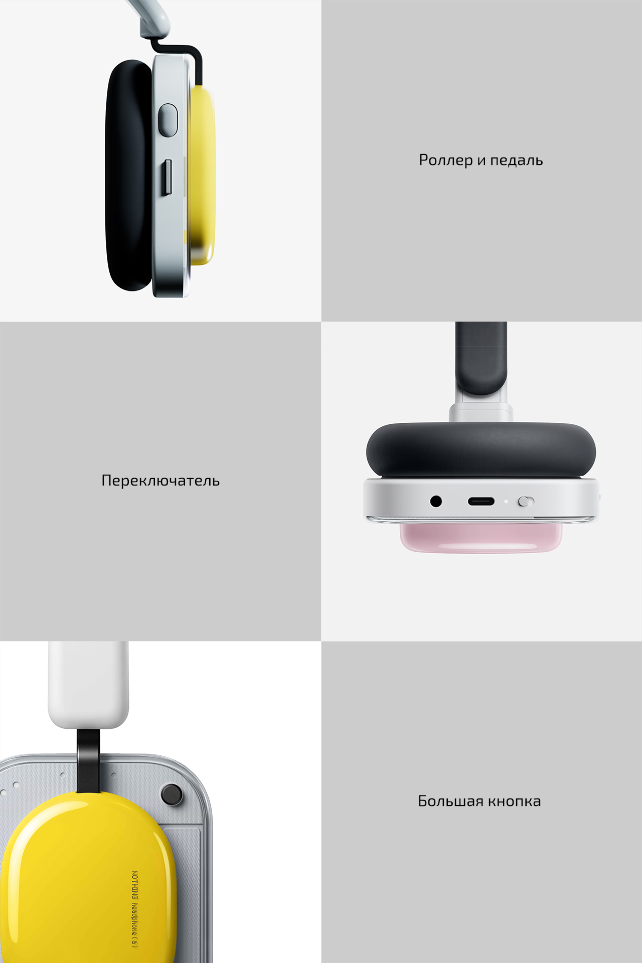 Управление с помощью сенсорных панелей – это, конечно, технологично, но не всегда удобно и нередко грешит ложными срабатываниями, особенно когда делаешь это на ходу. Nothing решили расположить на чашках Headphone (a) настоящие кнопки, колёсико и даже небольшой рычажок. Каждое нажатие на них даёт чёткий тактильный отклик, превращая регулировку громкости или переключение треков в приятное действие. А если захочется переназначить функции, сделать это можно в фирменном приложении Nothing X, где скрыто ещё много полезных настроек.