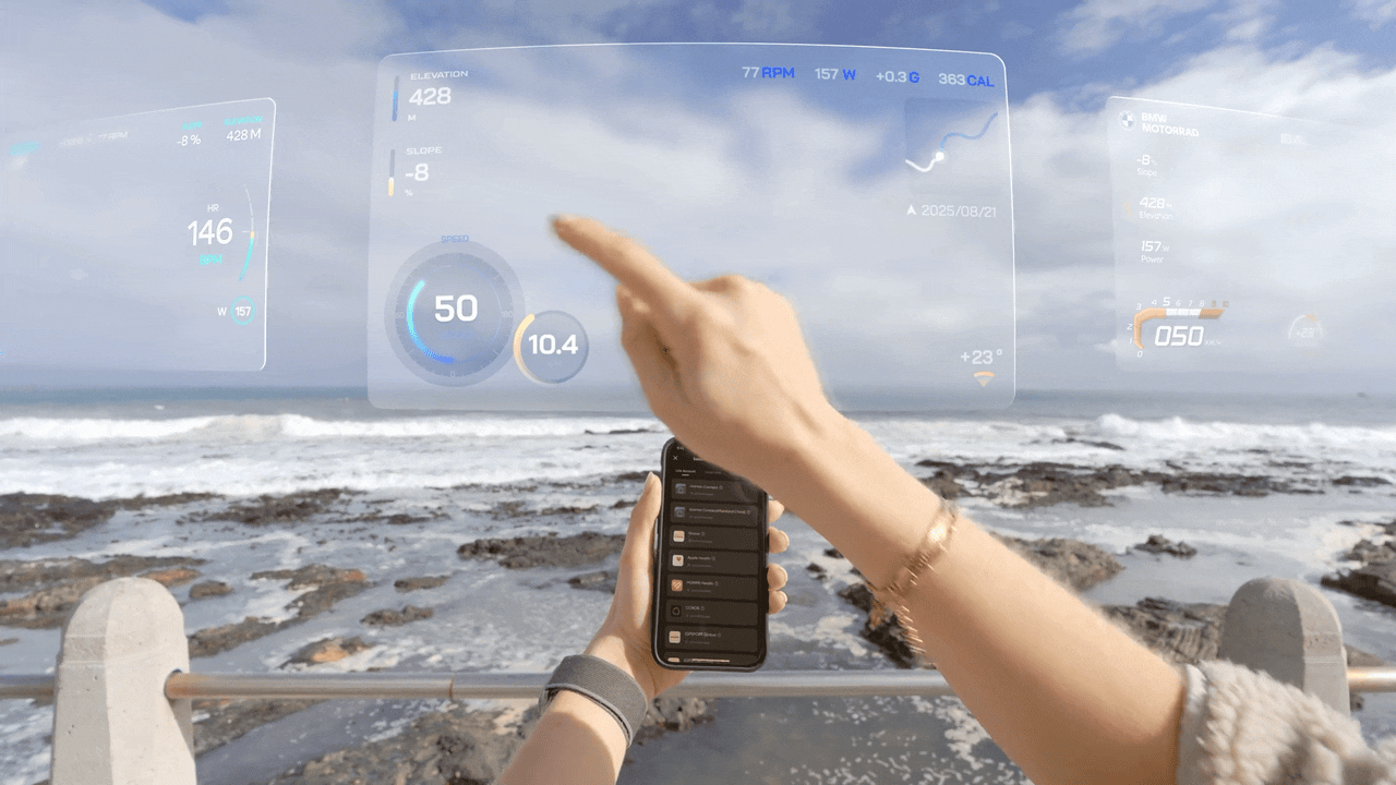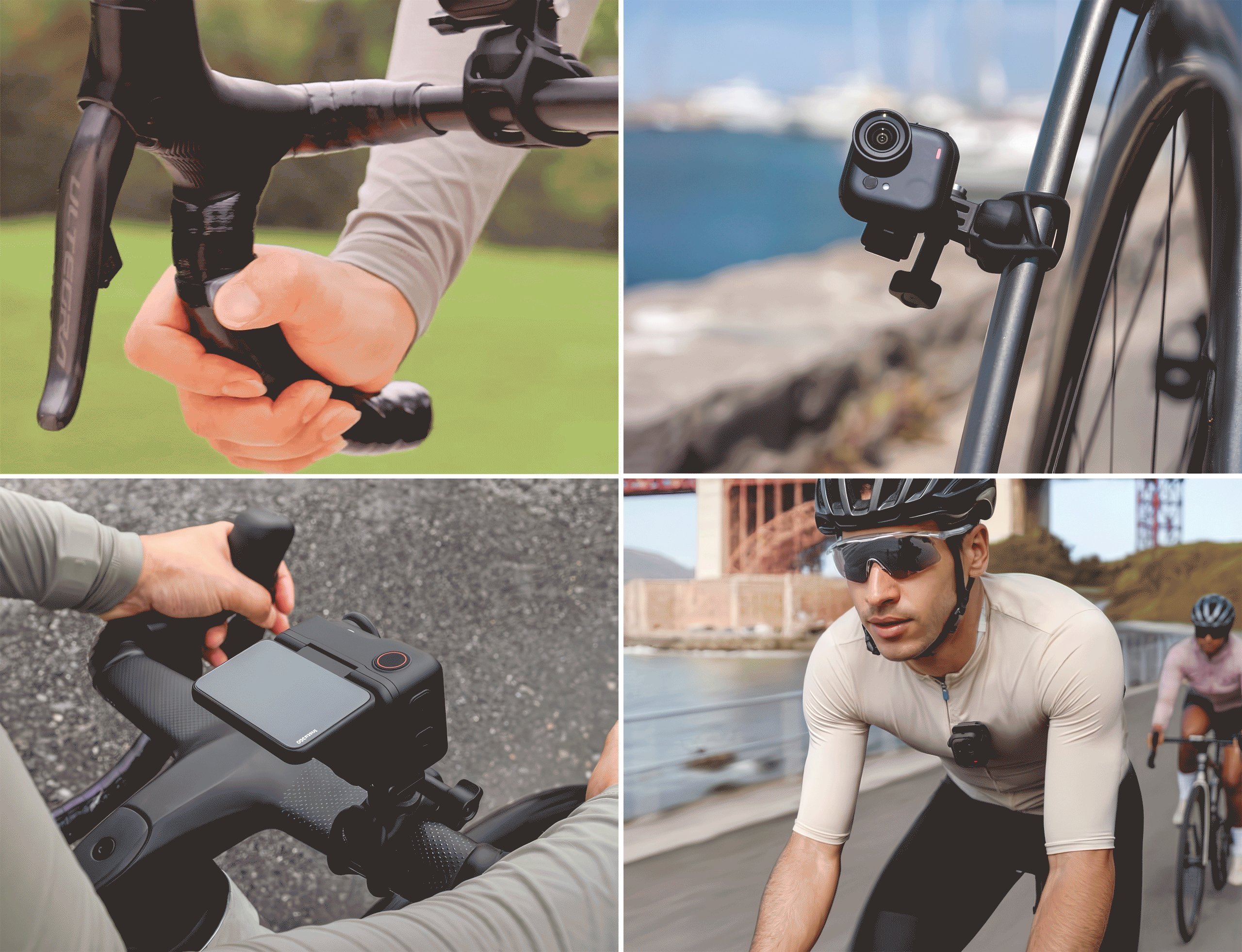 Ассортимент фирменных аксессуаров Insta360 Go Ultra может впечатлить ещё сильнее. Здесь и моноподы-трансформеры, и подводные ручки, а ещё ремешки и крепления для рулей и рам велосипедов. Вы даже можете повесить её на ошейник грейхаунда, чтобы потом посмотреть от первого лица, как он бежит на скорости до 70 км/ч. Ну а те, кто привык разгоняться самостоятельно – при помощи спортбайка, оценят возможность вывода статистики с Garmin, Strava или Apple Health прямо на видео и возможность управлять записью специальной беспроводной кнопкой (приобретается отдельно).