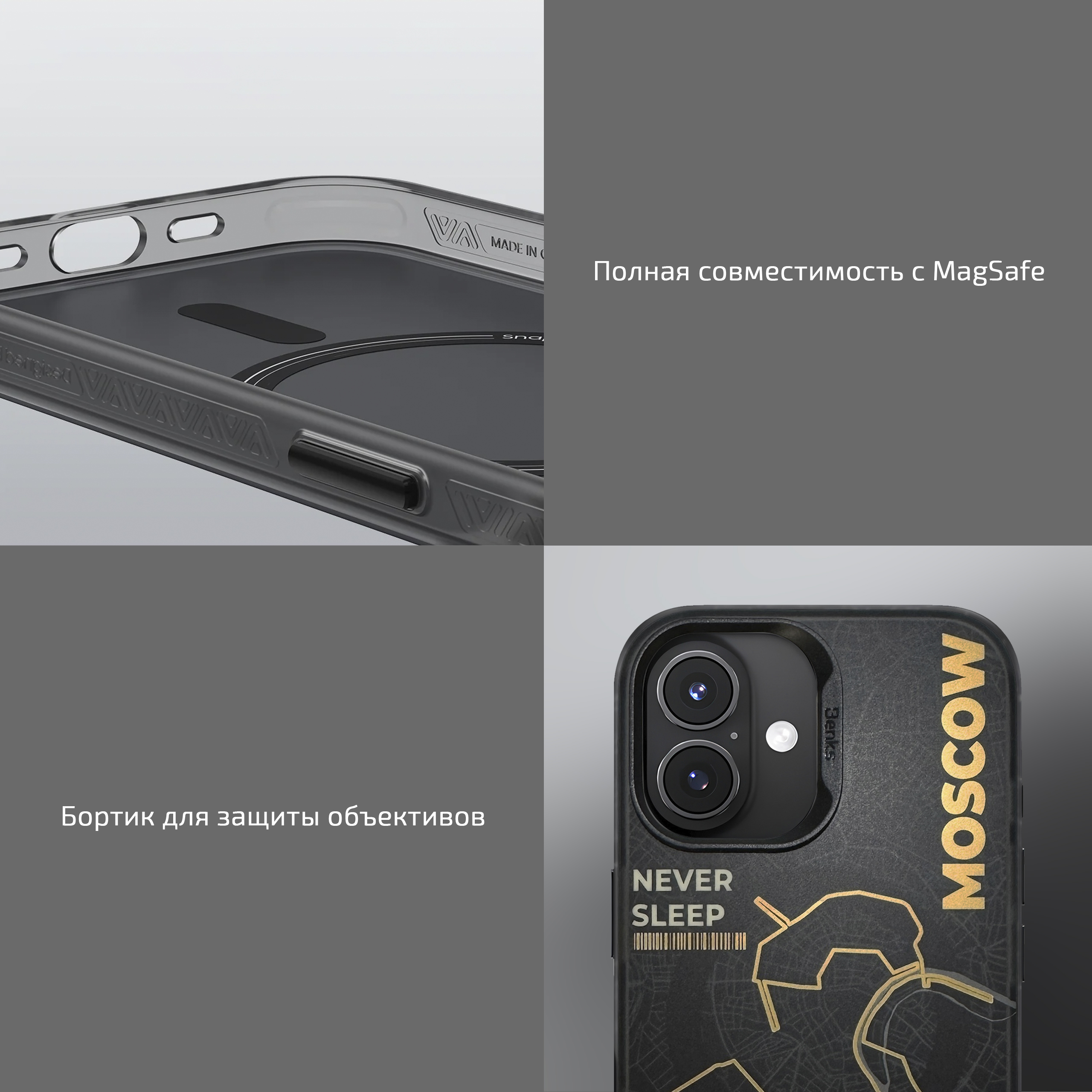 Похоже, что к МКАД, Бульварному, Садовому и другим кольцам Москвы добавилось ещё одно – кольцо MagSafe, правда только на этой карте. Чехол Benks Dynamic City Moscow, как и другие модели коллекции, оформлен фрагментом карты Москвы. Здесь легко найти Кремль, а фраза NEVER SLEEP кратко и точно описывает город, которому почти 900 лет, являющийся домом для более 13 миллионов людей.