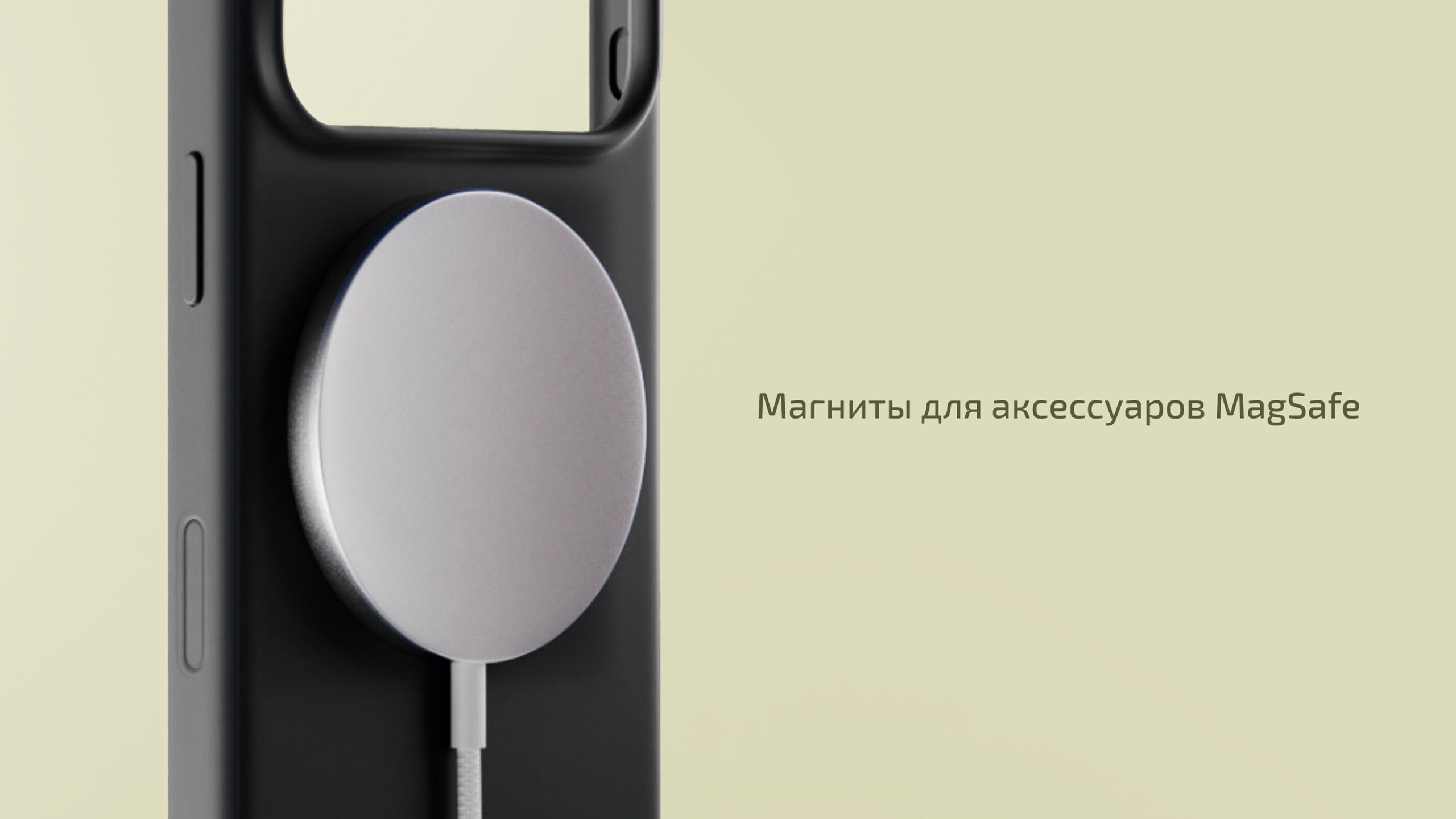 Мощные магниты, спрятанные под подкладкой из микрофибры, позволяют использовать все аксессуары MagSafe, а также быстро заряжать смартфон, используя современные зарядные устройства стандарта Qi2. Подкладка дополнительно смягчает удары и задерживает частицы пыли, препятствуя появлению мелких царапин, но стоит помнить, что для данной серии не заявлена повышенная защита при ударах, в отличие от Beats Rugged Case.