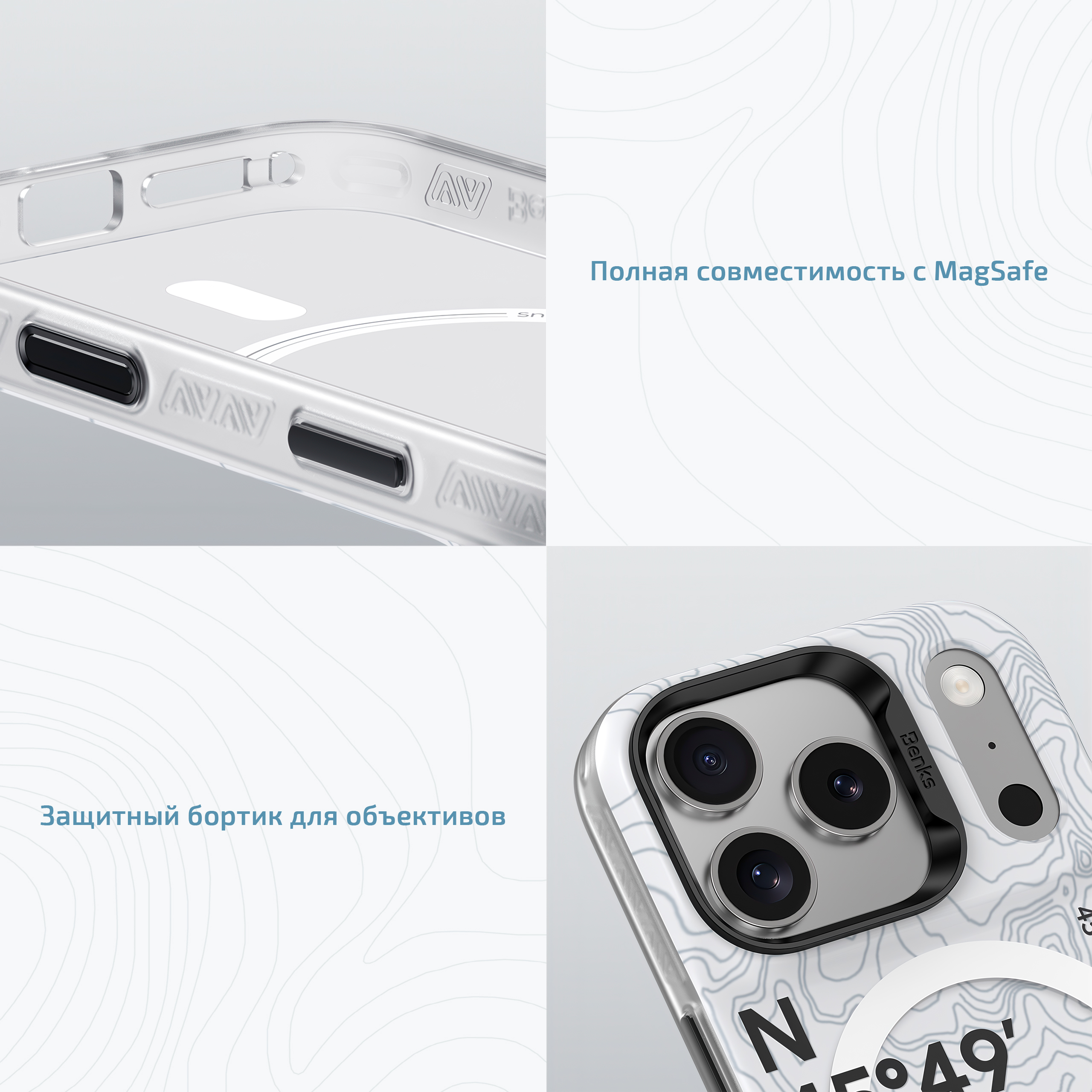 Своей надёжностью этот чехол стремится не ударить в грязь лицом даже рядом с горной экипировкой. Он прочный, но тонкий, а усиленные углы дополнительно защищают самые уязвимые места устройства, эффективно рассеивая силу удара. Сделан чехол Benks Dynamic Summit Mt. Blanc Phone Case, к слову, полностью из прочного поликарбоната, поэтому долго не пожелтеет и не помутнеет. Ну а рельефная текстура по бокам позволяет с комфортом держать гаджет даже в перчатках, ведь предотвратить падение всегда лучше, чем смягчать его.
