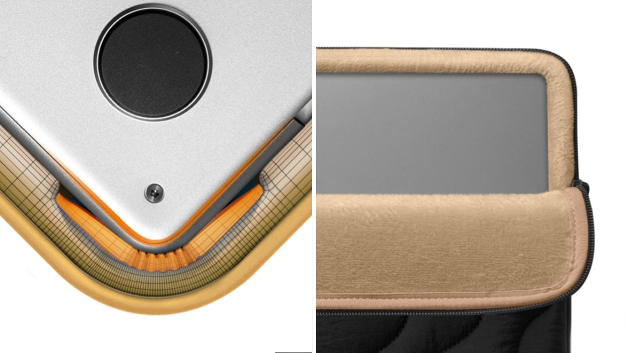 Как и полагается хорошему чехлу, Terra-A27 призван защищать доверенный ему гаджет от царапин, потёртостей и более серьёзных повреждений, которые могут возникнуть при активном движении в течение дня. Поэтому tomtoc дополнили его усиленными по технологии CornerArmor углами, которые эффективно поглощают ударную энергию при падении. А стёганая мягкая поверхность снаружи оберегает ноутбук от загрязнений и попадания на него влаги.