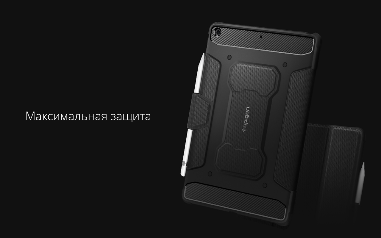 Максимальная надёжность и функциональность – именно так можно коротко описать серию Rugged Armor от Spigen. Чехол обеспечивает защиту от царапин, потёртостей, сколов и даже ударов. За счёт технологии Air Cushion, суть которой – повышенная защита наиболее уязвимых мест с помощью полостей с воздухом, аксессуар отлично справляется со смягчением падений, а встроенная обложка защищает дисплей.