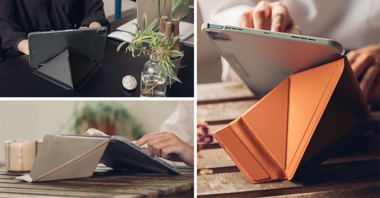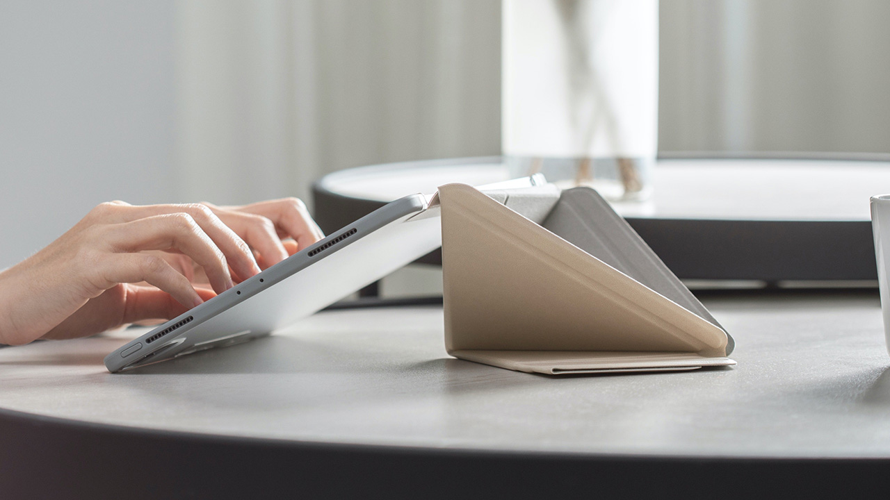Встроенная обложка отличается от большинства похожих аксессуаров. Она не только сворачивается, но и сгибается по диагонали. Конструкция-оригами позволяет работать с планшетом под разными углами как в книжной, так и в альбомной ориентациях экрана. Мягкая подкладка на внутренней стороне защищает дисплей от царапин.