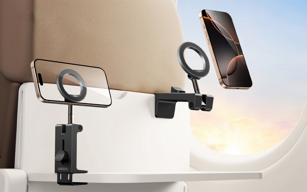 Держатель UGREEN LP863 буквально создан для заядлых путешественников. Складная конструкция позволяет мгновенно сложить держатель для удобной переноски. Но самая важная особенность аксессуара – зажимной тип крепления. Его можно закрепить на самые разные поверхности, например на столике в самолёте, на ручке чемодана, на кухонной полке, на приборной панели автомобиля, ну или просто на краю любого стола. Зажимные элементы держателя имеют силиконовое покрытие, которое предотвращает скольжение, а также защищает поверхность, к которой он крепится, от повреждений.