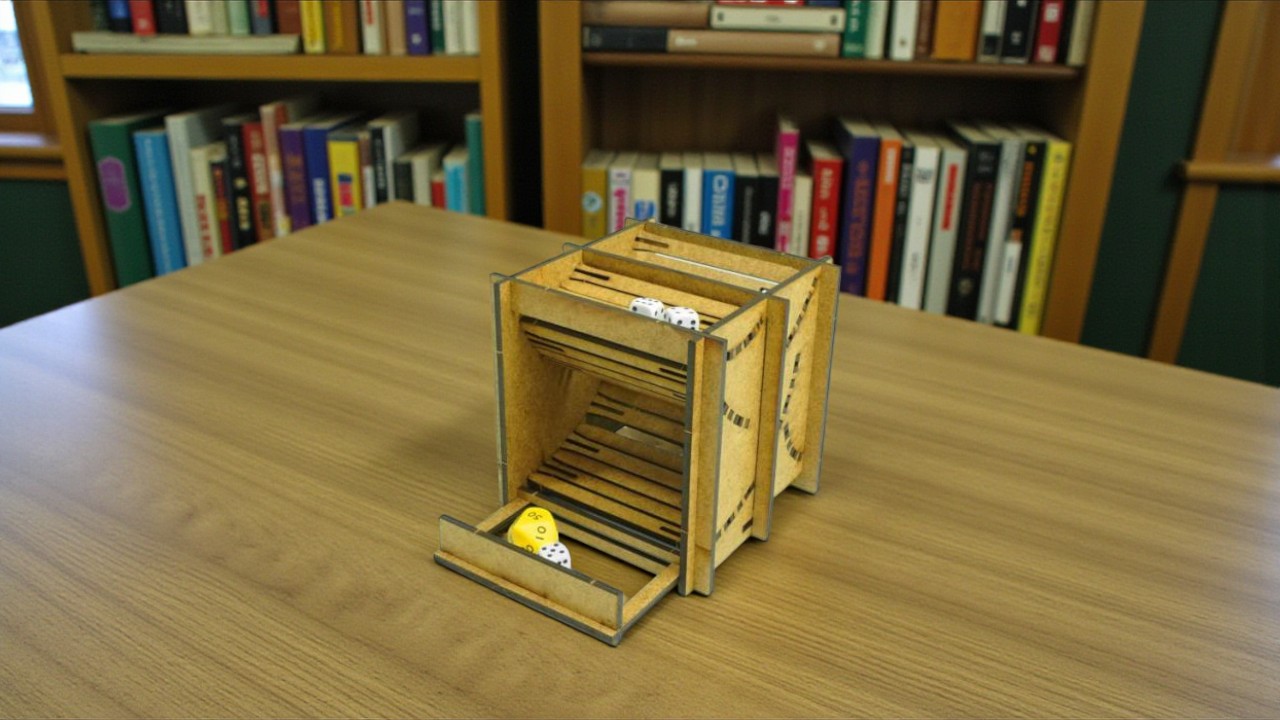 Башня для кубиков с поэтичным названием «Короб дождя» - ваш волшебный тессеракт, открывающий портал в «Сад изящных слов» Макото Синкая. Прямоугольные внешние панели скрывают изящные изгибы внутренних перегородок, рождающих мелодичный приглушенный перестук, напоминающий шелест дождевых капель по бамбуковой крыше, когда внутри оказываются игральные кости. Каждый бросок становится абсолютно неповторим, и результат случаен, как встреча героев аниме в беседке в сезон дождей цую.
