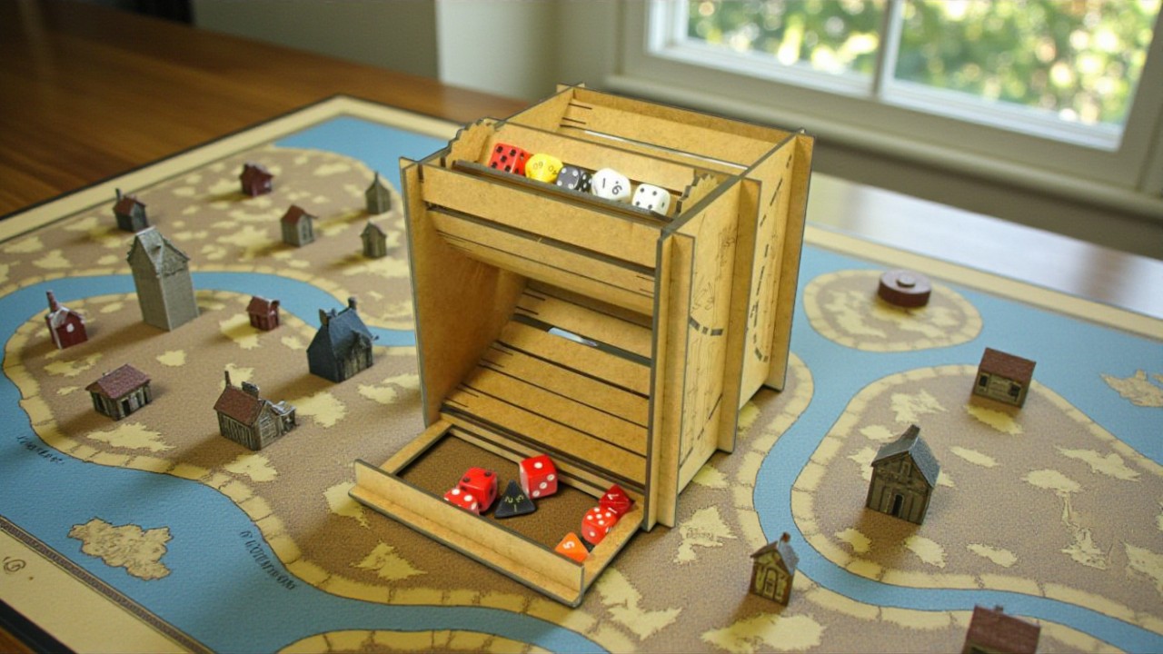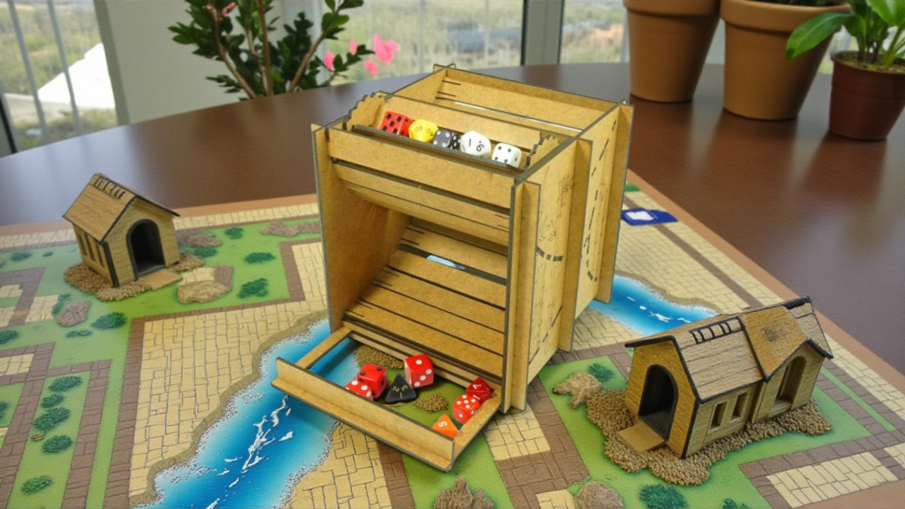 Водяные мельницы произвели в Японию целую революцию. Хитрые механизмы на огромном множестве рек приспособили под самые разные нужды: их использовали и для превращения зерна в муку, и для обработки дерева, и для изготовления бумаги. Находилось им применение и в кузнечном деле. Простые жители думали, что поворачивать многочисленные колёса помогает дух воды Каппа, но без помощи инженеров и науки даже такого могущественного водяного расшевелить бы не вышло. «Мельница на склоне Фудзи» - модель башни для кубиков, повторяющая базовые механизмы в миниатюре и приспособленная для выдачи максимально случайного результата при броске игральных костей.
