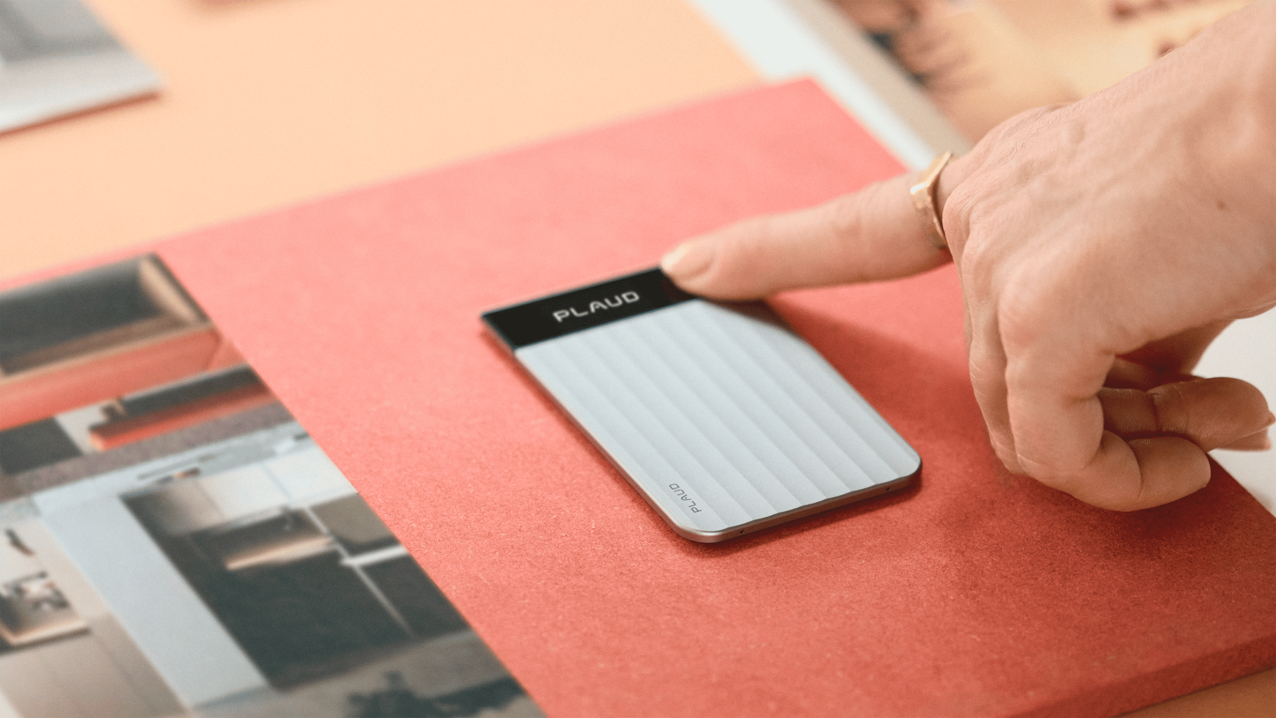 Алюминиевый корпус диктофона остался таким же тонким, как у Plaud Note. Он по прежнему удивляет толщиной, составляющей менее 3 миллиметров, а также весом всего в 30 граммов. В комплект входит MagSafe-чехол, позволяющий носить диктофон на смартфоне как обычный магнитный картхолдер для iPhone. Для устройств без MagSafe или в чехлах без магнитов поставляется магнитное кольцо с клеевым слоем. Время полной зарядки от комплектного магнитного кабеля составляет 2 часа.