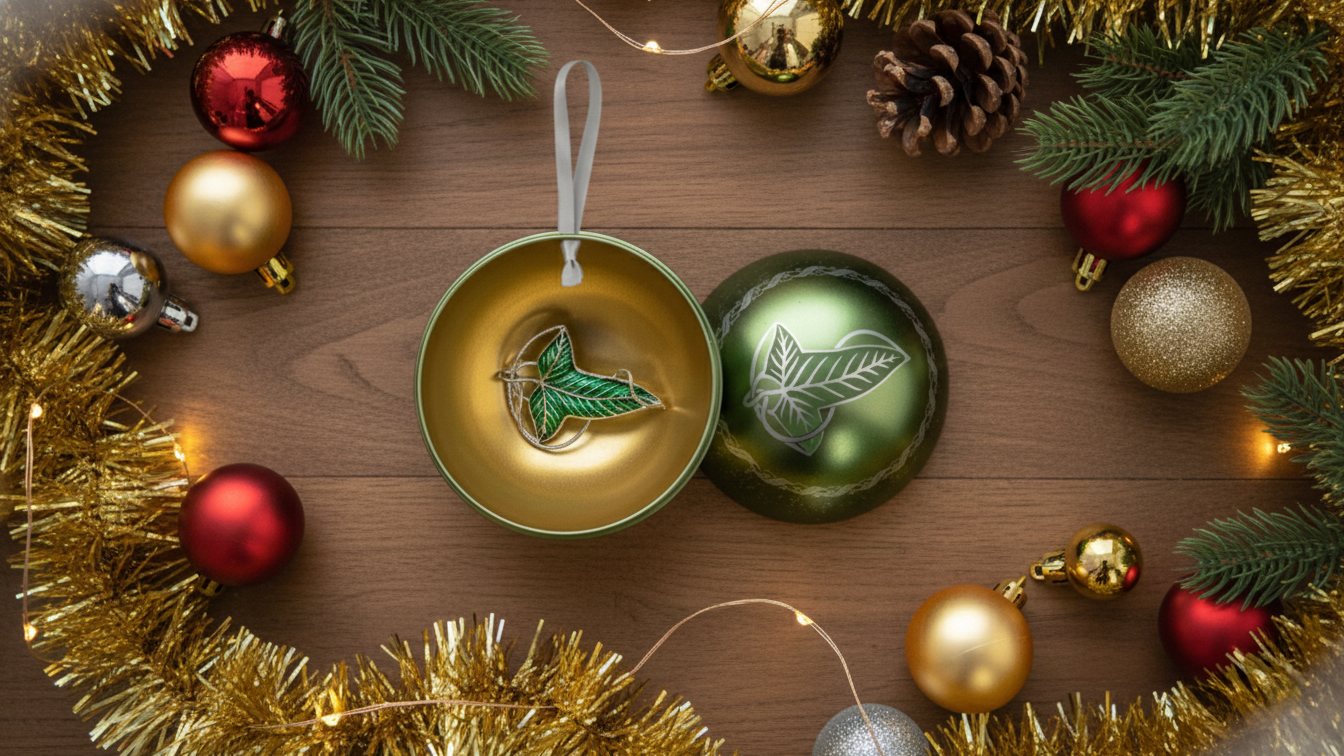 Средиземье полнится легендами о том, что лориэнские листья, переданные в дар самой владычицей Галадриэль, приносят удачу и эльфийское покровительство. Привнести эту магию в праздничные дни предлагает Cinereplicas — бренд, который специализируется на производстве товаров, лицензированных кинофраншизами. Их комплект объединяет ёлочный шар и брошь, украшенные знаковым для всех ценителей «Властелина колец» символом.