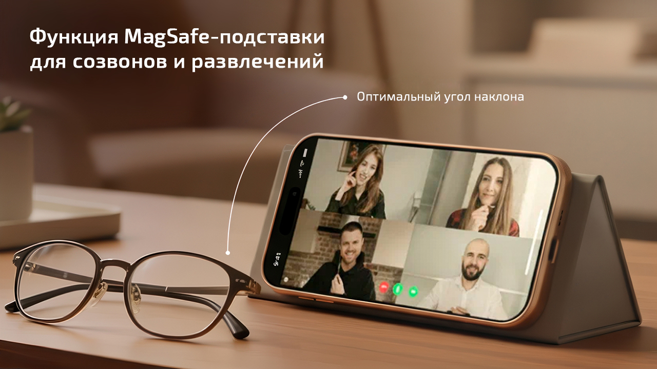 Футляр подходит к очкам любых популярных форм, а его исполнение не вызовет эстетического диссонанса при использовании с дорогими брендовыми очками. Наружная часть футляра отделана приятной эко-кожей. Внутри – подкладка из мягкой бархатистой микрофибры, исключающая появление даже мельчайших царапин на линзах. При этом магниты внутри не простаивают: в собранном состоянии футляр может послужить устойчивой подставкой для смартфона или в любой момент стать базой для MagSafe-кошелька, чтобы важные мелочи всегда держались вместе. Это тот случай, когда аксессуар полезен, даже когда очки на лице.