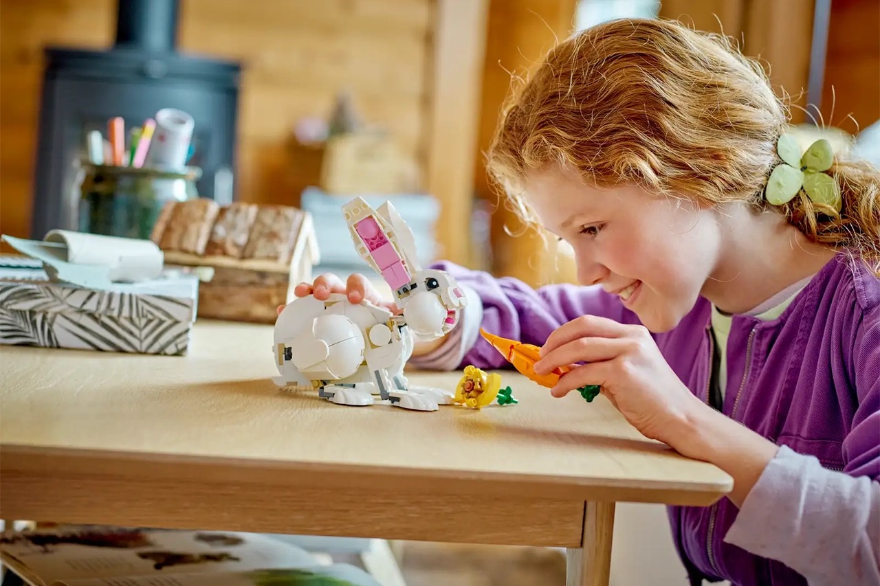 Этот набор из 258 деталей ЛЕГО позволит собрать очаровательного белого кролика высотой 15 см, у которого двигаются уши, голова и задние лапы. Но что делать, когда он надоест? Ответ прост: разберите и сделайте другого зверька, ведь это конструктор серии 3-в-1!