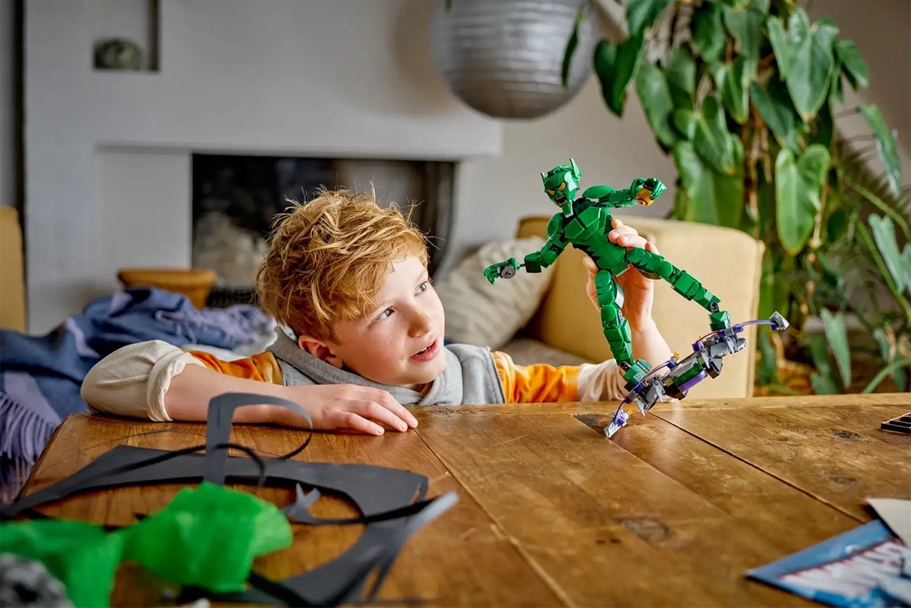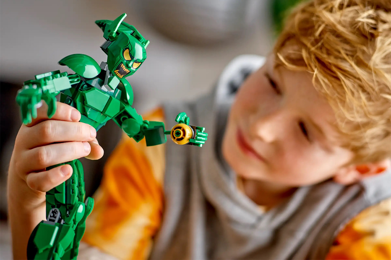 Высота готового злодея составляет 24 сантиметра. Руки и ноги Зелёного гоблина полностью подвижные, причём в нескольких точках, что позволяет не только фиксировать персонажа в реалистичных боевых стойках, но и устраивать баталии с друзьями: Спайдермен в серию тоже вошёл, причем даже несколько версий.