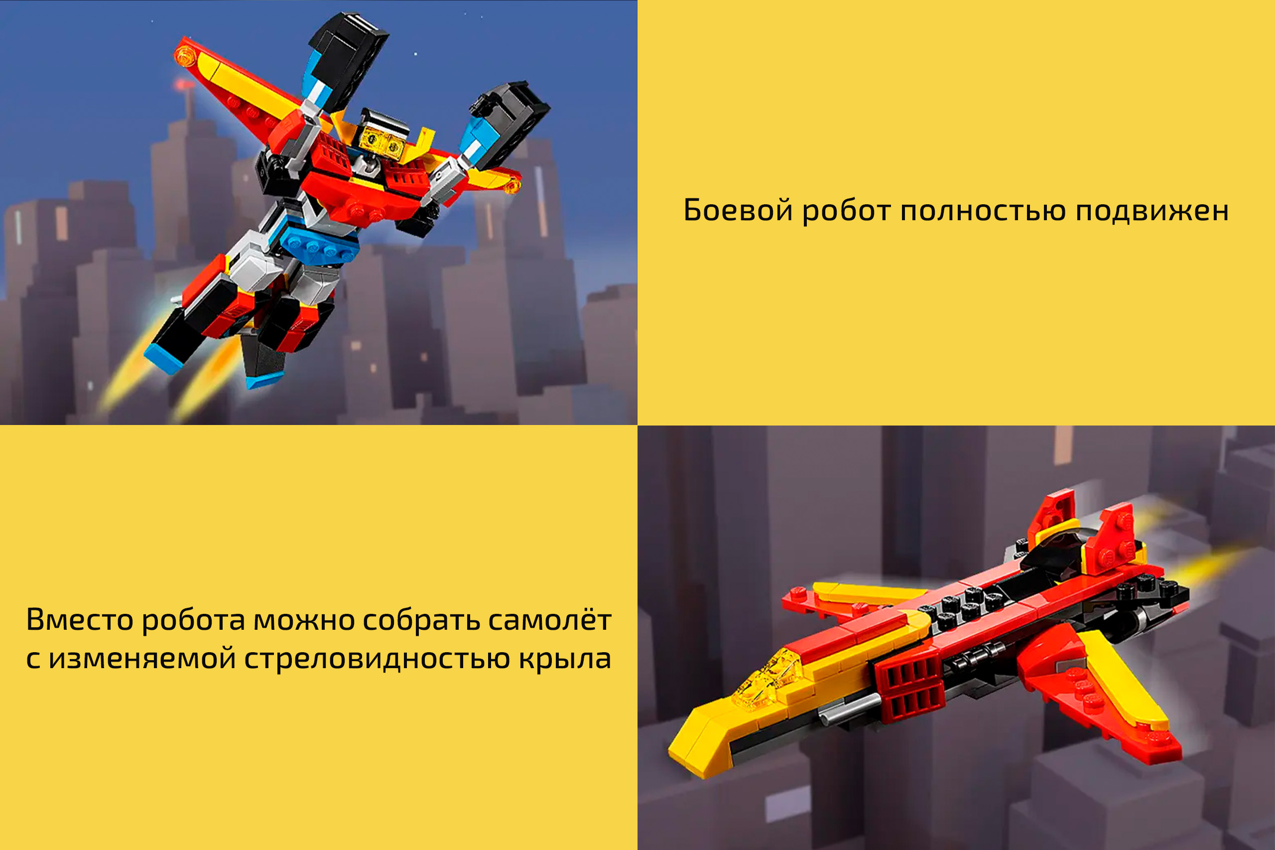 Набор рассчитан на детей в возрасте от шести лет и состоит из 159 деталей. Подробная пошаговая схема, где содержатся инструкции для всех трёх вариантов сборки конструктора, делает процесс максимально простым, поэтому помощи родителей не потребуется, как и необходимости что-либо переводить и читать в принципе.