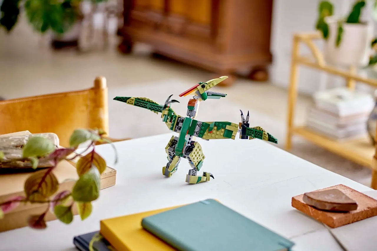 Птеродактилю не страшен даже тиранозавр. Почему? Возьмёт, да улетит! Не самые большие и страшные, но огромные по меркам летающих существ, птеродактили были настоящими покорителями неба. Его версия из конструктора отличается подвижными крыльями, которые можно реалистично складывать, чтобы превратить летящего птеродактиля в сидящего.