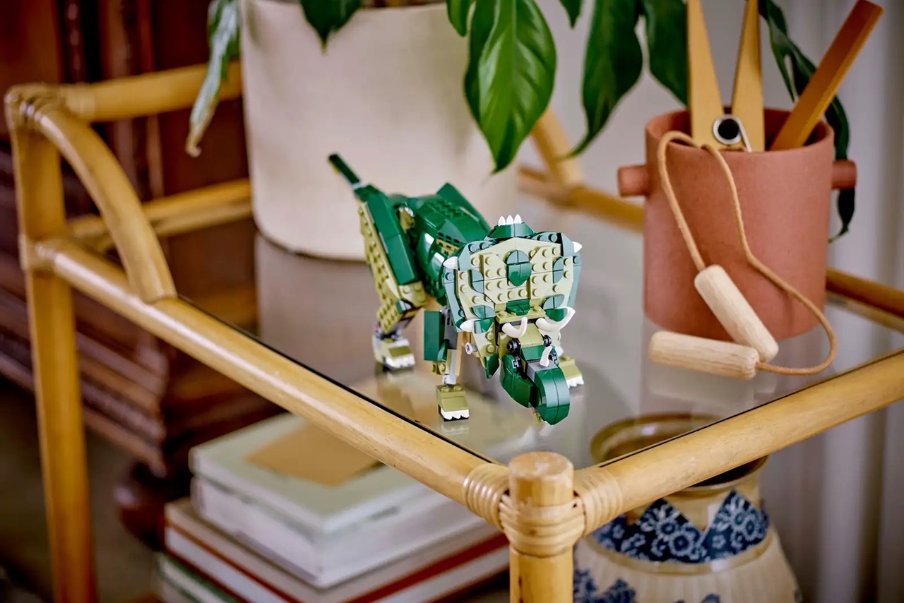 Другой известный, но менее жуткий динозавр – трицератопс. Большой, защищённый как танк, но травоядный и относительно безобидный – если на него не нападать. В отличие от модели тиранозавра, у которой двигаются передние и задние лапы, голова, челюсти и даже пальцы, трицератопс получил лишь подвижные ноги и голову.