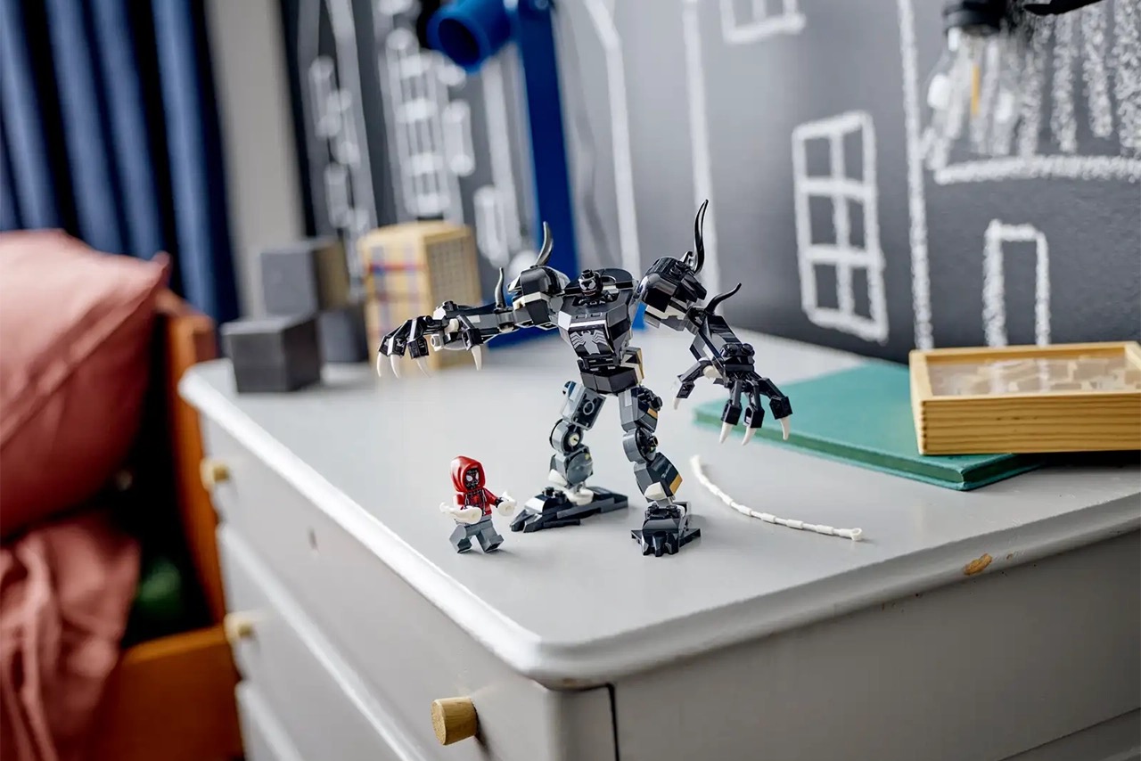 Каким бы крутым ни был злодей, супергерой должен его победить – закон жанра. Помимо большого костюма, в набор входят мини-фигурки: сам Веном, а также Человек-паук с паутиной, которой он героически ловит одного из своих каноничных антагонистов.