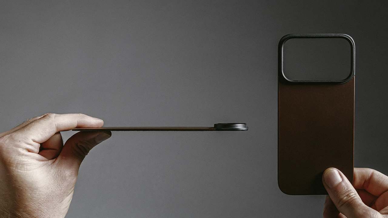Кожаная накладка Nomad Leather Back Cover отличается небольшой толщиной (примерно 2,5 миллиметра, не считая выступающего ободка камеры), которой удалось достичь за счёт использования прочной и тонкой основы из стекловолокна, обтянутой кожей. Угол с вырезом камеры сделан из прочного поликарбоната, а выступающий ободок призван уменьшить риск появления царапин, отпечатков и загрязнений на оптике, а также снизить количество контактов объективов с плевыми частицами на столах и других поверхностях, где в течение дня может оказываться ваш iPhone.