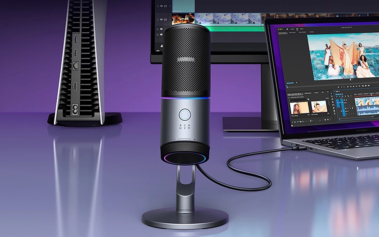 Ugreen сделали не просто микрофон, а стильный настольный аксессуар, который сразу выделяется эффектной RGB-подсветкой. Он явно создан для стримеров, подкастеров, преподавателей и всех, кому важно, чтобы голос звучал четко и чисто, без фонового гула. Конденсаторная капсула с кардиоидной диаграммой направленности ловит именно ваш голос, игнорируя шум сзади и по бокам. Ну а подключение максимально простое: вставили кабель USB-C в ноутбук или компьютер – и устройство готово к работе, без драйверов и долгих настроек.