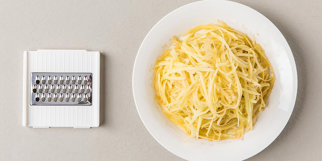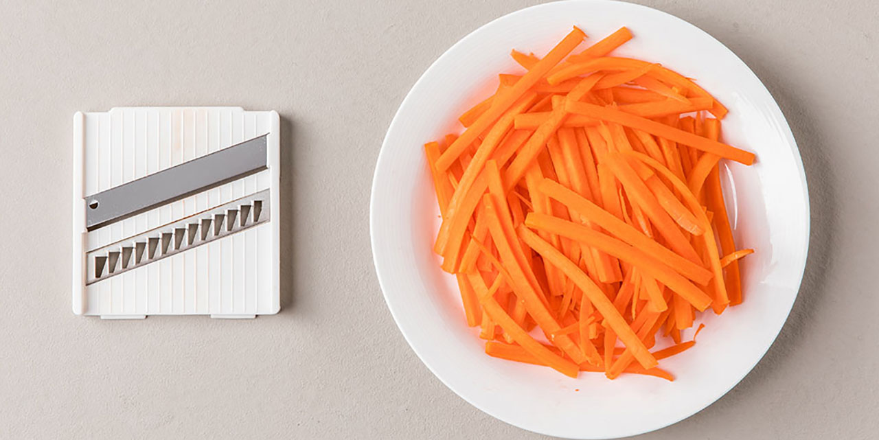 Нарезать фрукты и овощи можно по-разному. Более того, в разных блюдах часто нужна разная форма одного и того же ингредиента. Например, для пассеризации морковку можно натереть, а вот для плова или лапши-вок идеально подойдёт тонкая соломка. Многофункциональная тёрка Jordan&Judy отлично справится с любой поставленной задачей. В комплект входят насадки для нарезки дольками, кубиками, соломкой, для измельчения, шинковки и тёрка. С таким арсеналом можно подобрать нужную насадку для любого блюда.