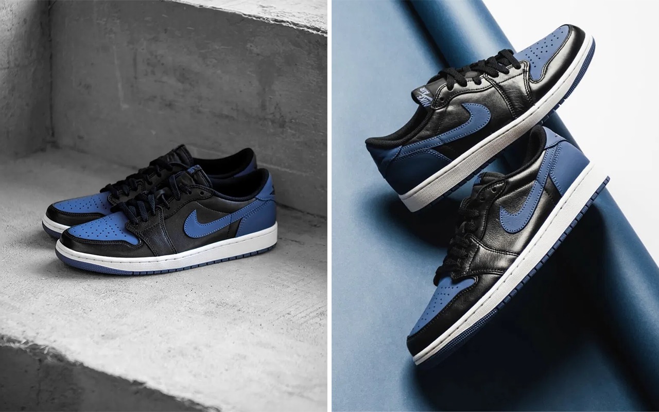 Низкие Air Jordan 1 в чёрно-синей расцветке. Фактура кожи, из которой выполнен верх, придаёт модели премиальный вид, а синие акценты добавляют агрессивности. Подошва примечательна знаковым для серии протектором. Кроссовки изготовлены по спецификациям, использовавшимся в год дебюта модели, что делает их достойным предметом коллекции даже для искушённых сникерхедов.