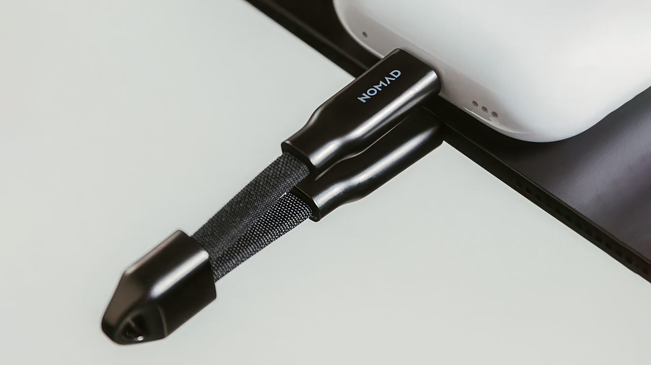 Nomad ChargeKey V2 представляет из себя кабель длиной 12 см, который выполнен в виде компактного брелока. Благодаря специальному «ушку» его можно удобно закрепить в любом месте. При этом он не боится активного использования – кабель получил прочную оплётку из нейлона, которая защищает внутренние проводники от изгибов, изломов и истирания. А цинковые наконечники с гальваническим покрытием устойчивы к царапинам. Кстати, они также оснащены встроенными магнитами, так что когда кабель не используется – они соединяются, надёжно фиксируя его в сложенном виде.