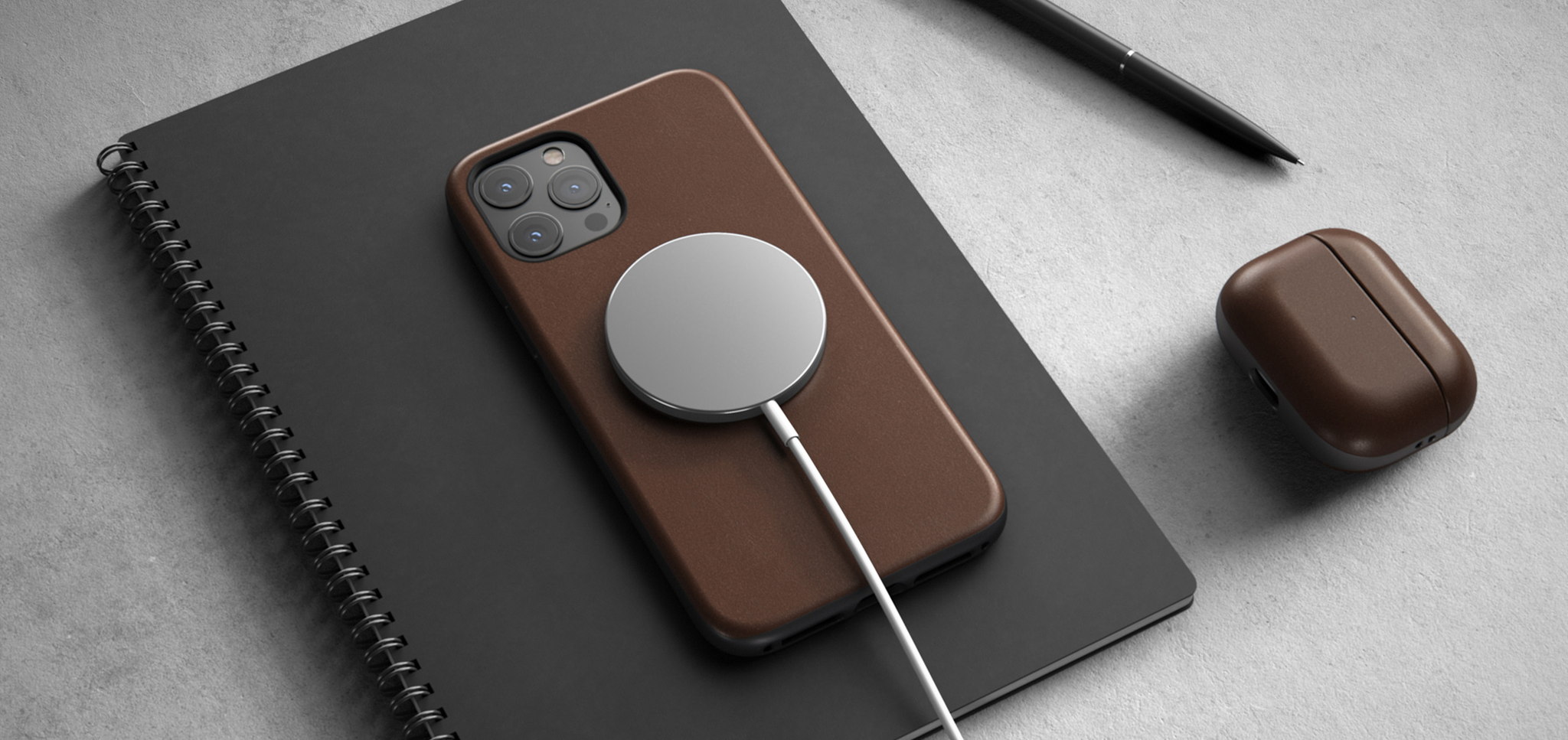 С приходом на рынок нового стандарта беспроводной зарядки с магнитным креплением производители аксессуаров начали разработку чехлов, поддерживающих данную технологию. Компания Nomad не осталась в стороне и усовершенствовала свои уже полюбившиеся многим кожаные чехлы для iPhone, добавив поддержку MagSafe.