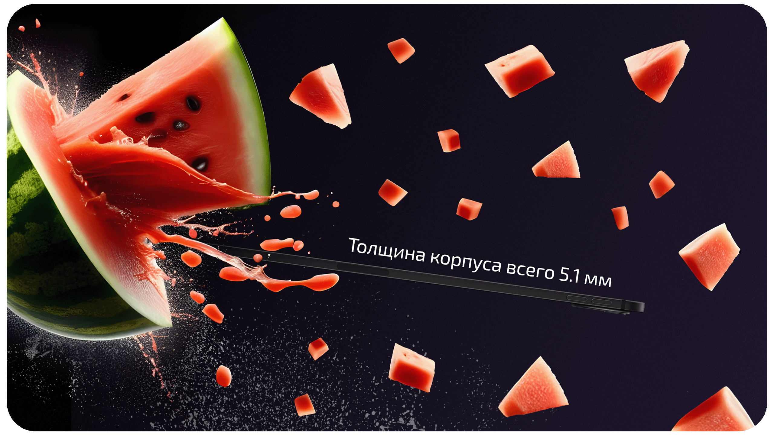 Толщина корпуса 13-дюймового iPad Pro составляет всего 5,1 мм – это даже тоньше iPhone Air, причём инженеры Apple смогли вместить ёмкий аккумулятор, обеспечивающий 10 часов работы планшета. Корпус сделан из анодированного алюминия, а кнопки расположены так, чтобы их было комфортно и быстро находить, пользуясь устройством как в портретной, так и в альбомной ориентации экрана.
