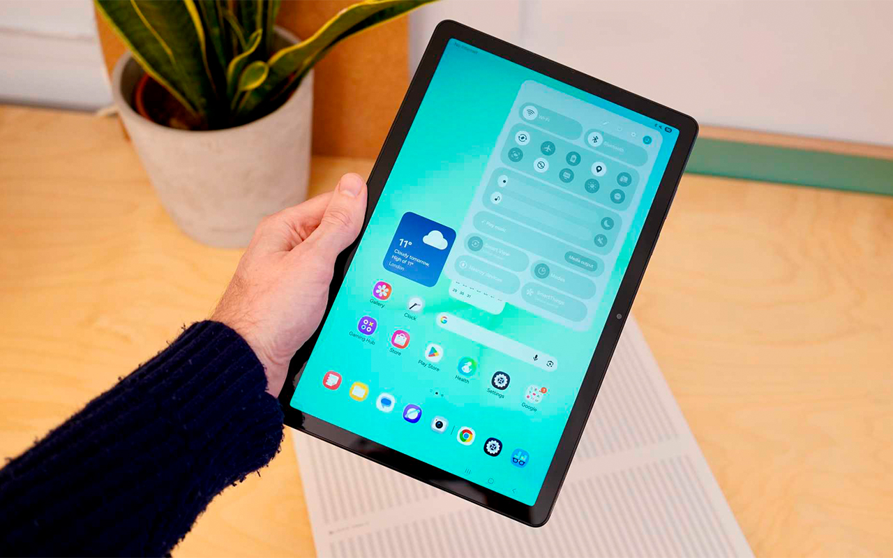Главная вещь в планшете – это конечно экран. Galaxy Tab A11+ получил 11-дюймовый дисплей с разрешением 1920 x 1200 пикселей. Благодаря частоте обновления в 90 Гц прокрутка страниц и анимации интерфейса выглядят очень плавными. Яркости экрана более чем достаточно для помещений, а вот для работы под прямыми солнечными лучами на улице запас всё же маловат. Но часто ли мы выносим планшет на улицу? Экран защищён закалённым стеклом, а сам корпус девайса изготовлен из высококачественного алюминия. Благодаря толщине 6,9 мм планшет удобно держать одной рукой.