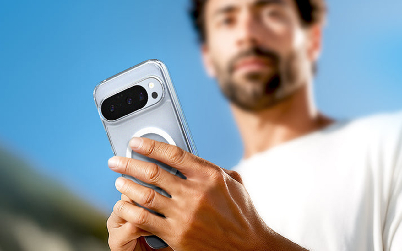 В спинке чехла располагается магнитное кольцо. Оно позволяет смартфону надёжно фиксироваться на беспроводных зарядках, магнитных автомобильных держателях и совместимых настольных подставках. Пользователь может использовать с этим чехлом широкий спектр магнитных аксессуаров, будь то беспроводные пауэрбанки или картхолдеры. Благодаря высокой мощности магнитов аксессуары не спадут с чехла, когда его достают из узкого кармана штанов или сумки.