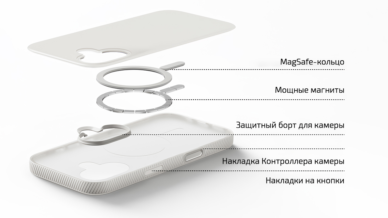 Особое внимание Belkin уделили области Контроллера камеры. Здесь она не осталась открытой, а защищена от попадания пыли или от неприятных повреждений чувствительной сенсорной накладкой. Так что можно продолжать привычно использовать её, не останавливая съёмки даже в сложных условиях. А встроенный магнитный модуль с поддержкой MagSafe помогает привычно пользоваться всеми аксессуарами «яблочной» экосистемы без необходимости снимать чехол.