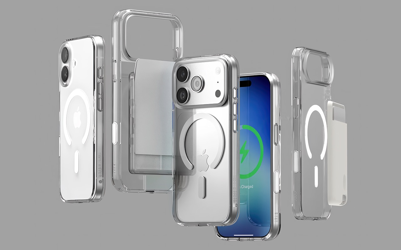Само собой чехол имеет магнитное кольцо, так что он совместим со всеми MagSafe-аксессуарами. Он надёжно удерживает на спинке не только лёгкие картхолдеры, но и, например, тяжёлые беспроводные пауэрбанки. Мощные магниты удержат на смартфоне прикреплённые аксессуары даже если доставать девайс из узкого кармана штанов. А ещё чехол обеспечивает эффективную беспроводную зарядку, так как индукционные катушки смартфона из зарядного устройства идеально выравниваются относительно друг друга.