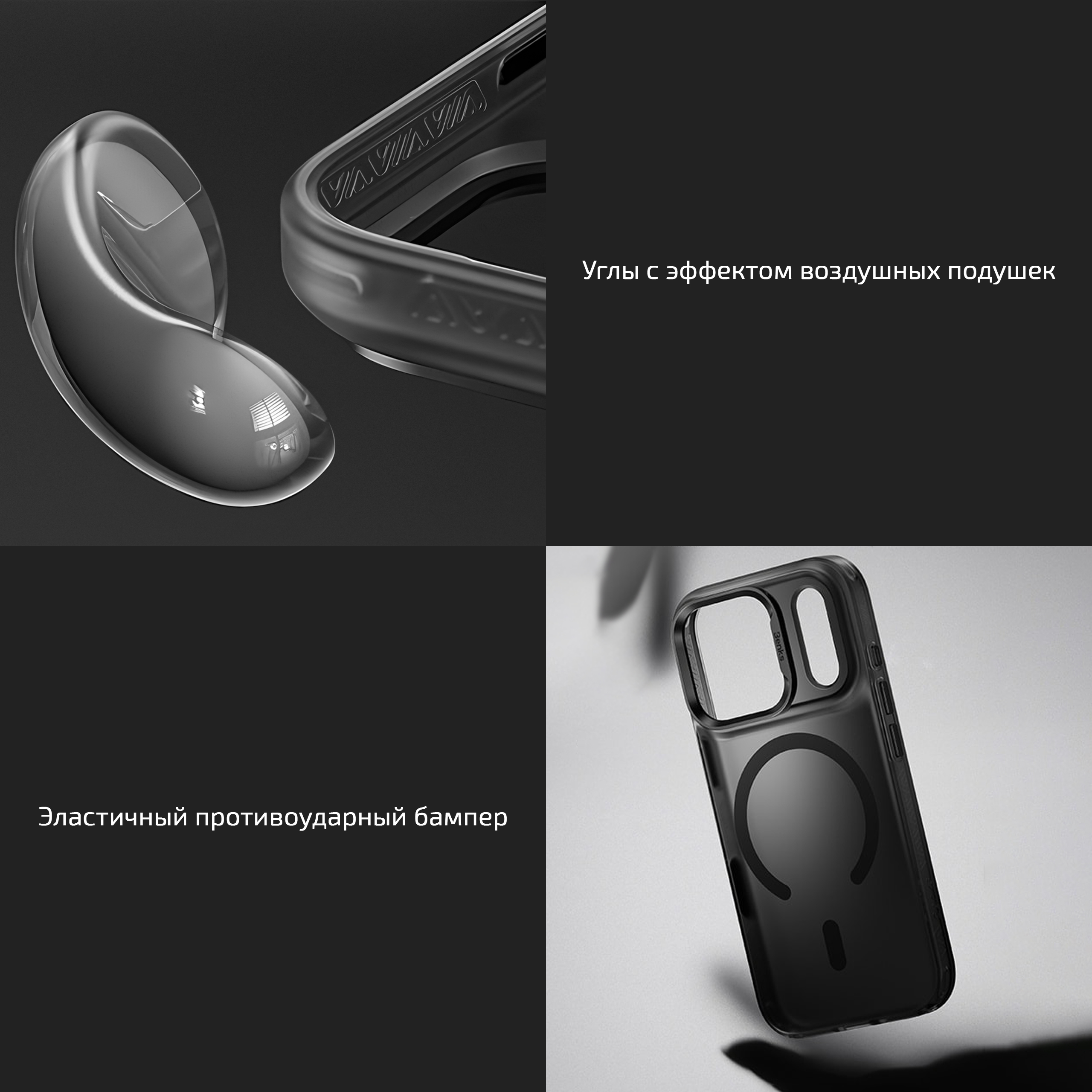 Чехол совместим с MagSafe за счёт встроенных магнитов, поэтому вы можете с комфортом пользоваться магнитными автомобильными держателями, MagSafe-пауэрбанками, беспроводными зарядками, картхолдерами и другими аксессуарами. Комфортный доступ к разъёму зарядки, как и к другим функциональным элементам, тоже предусмотрен.