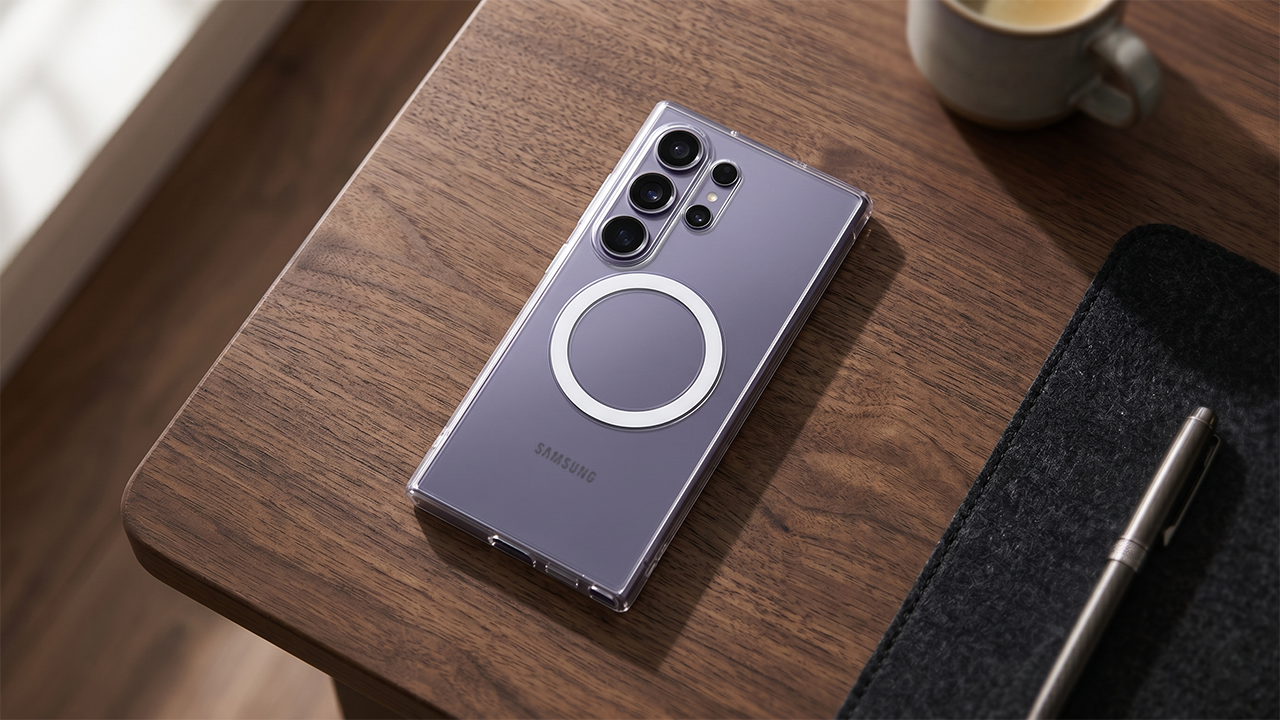 Один из главных приятных бонусов, которыми интересен этот чехол Samsung – это наличие встроенного магнитного кольца, который поддерживает стандарт Qi2 и совместим с технологией MagSafe. Это значит, что смартфон мгновенно и надёжно фиксируется на беспроводных зарядках, подставках, держателях в автомобиле и других аксессуарах. И такое крепление не боится испытаний даже активным движением или дорогой за пределом скоростных трасс, а остаётся на месте ровно до того момента, как вы сами захотите его снять.