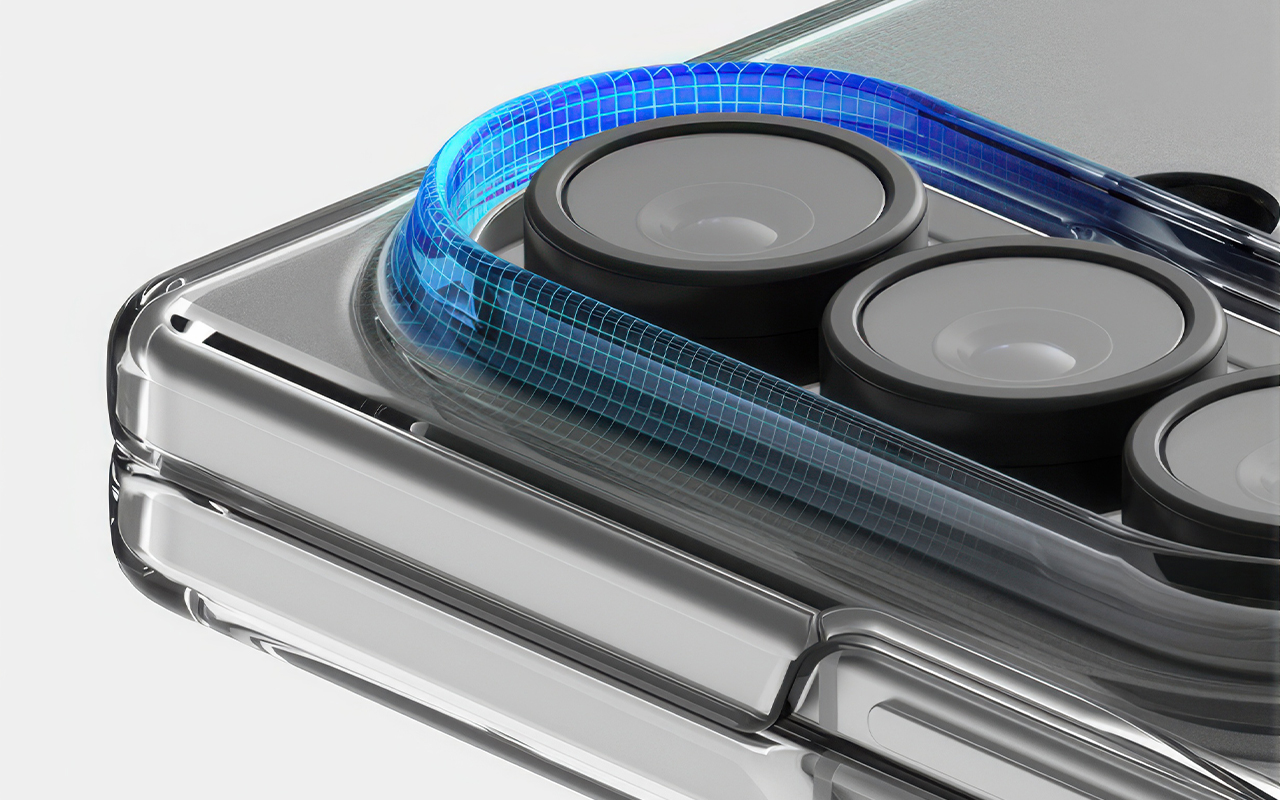 Производитель позаботился о дополнительной защите камер устройства. Чехол имеет приподнятый бортик вокруг модуля камер. Такое решение позволяет пользователю класть смартфон объективами вниз даже на твёрдые поверхности, без опаски поцарапать их линзы. И в случае падения смартфона этот бортик может уберечь камеры от самых серьёзных повреждений. При создании чехла используются усовершенствованный полимер с технологией защиты от ультрафиолета. Это означает, что аксессуар со временем не помутнеет и не приобретёт жёлтый оттенок и не превратится в неприятную мутновато-жёлтую оболочку через пару месяцев.