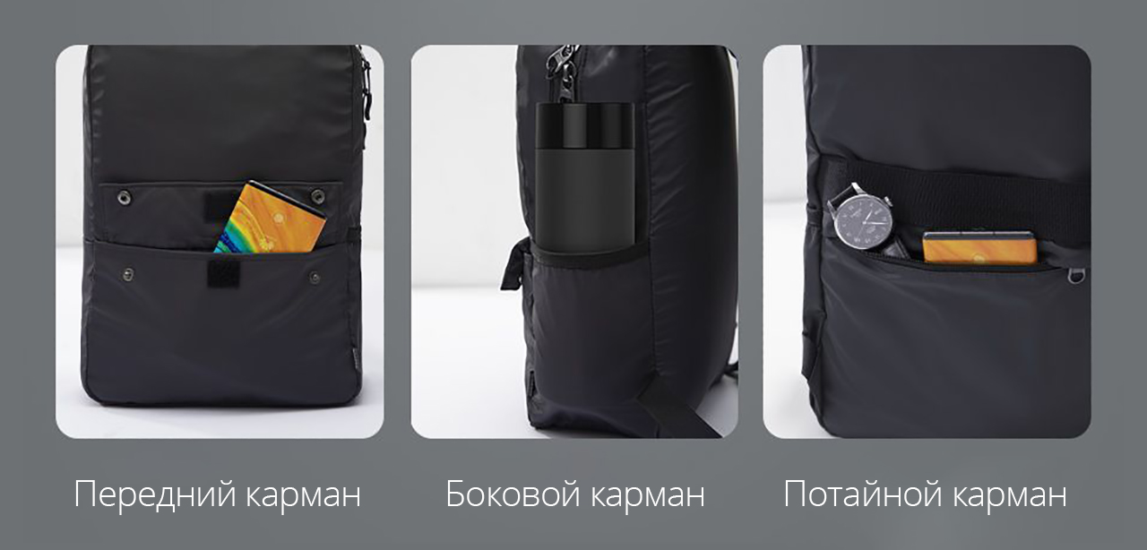 Рюкзак сделан из относительно тонкого дышащего нейлона. Он приятен на ощупь и отличается высокой износостойкостью и лёгкостью. Общий вес пустого рюкзака составляет всего 330 граммов, а в свёрнутом виде он займёт минимум места. Используемый материал устойчив к влаге, поэтому брызги, дождь и снег не повредят содержимому Baseus Let's go.