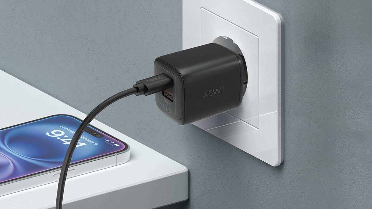 Сетевое зарядное устройство оснащено двумя портами – универсальным USB-C и классическим USB-A. При этом оно поддерживает распространённые стандарты быстрой зарядки: Power Delivery 3.0, Quick Charge 4+, AFC, SCP и FCP. Так что подходит для подпитки энергией устройств разных брендов, без необходимости брать с собой отдельные блоки. А технология PPS точно подбирает нужный ток и напряжение, подстраиваясь под требования аккумулятора и продлевая его срок службы.