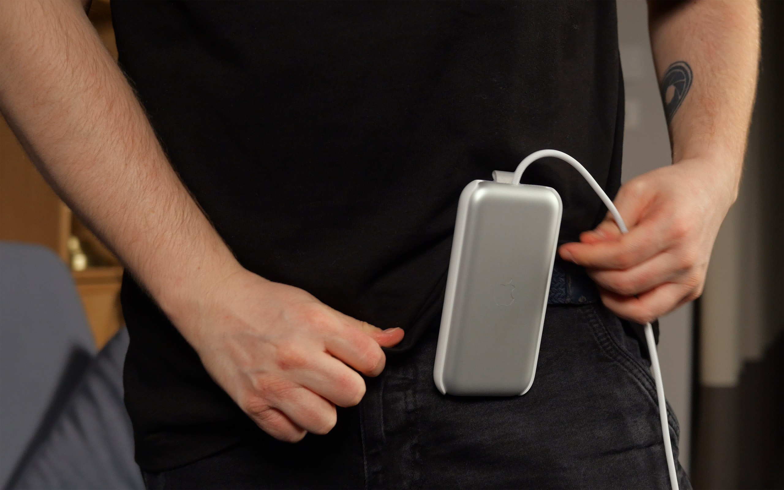 Ещё одно важное улучшение – автономность. В сравнении с моделью первого поколения она выросла, хоть и не так сильно. Теперь шлем может работать от комплектного аккумулятора до 2,5 часов и до 3 часов при просмотре видео, поэтому его хватит даже для длинных кинолент. Попадающий свет может нарушить впечатление от просмотра, поэтому в шлеме предусмотрен мягкий уплотнитель Light Seal, блокирующий внешний свет. Контактная часть, поставляется в разных размерах и легко заменяется. Ну а если хочется устроить сериальный марафон – вы можете разместиться на диване и подключить зарядное устройство, ведь Vision Pro можно с комфортом пользоваться во время зарядки.