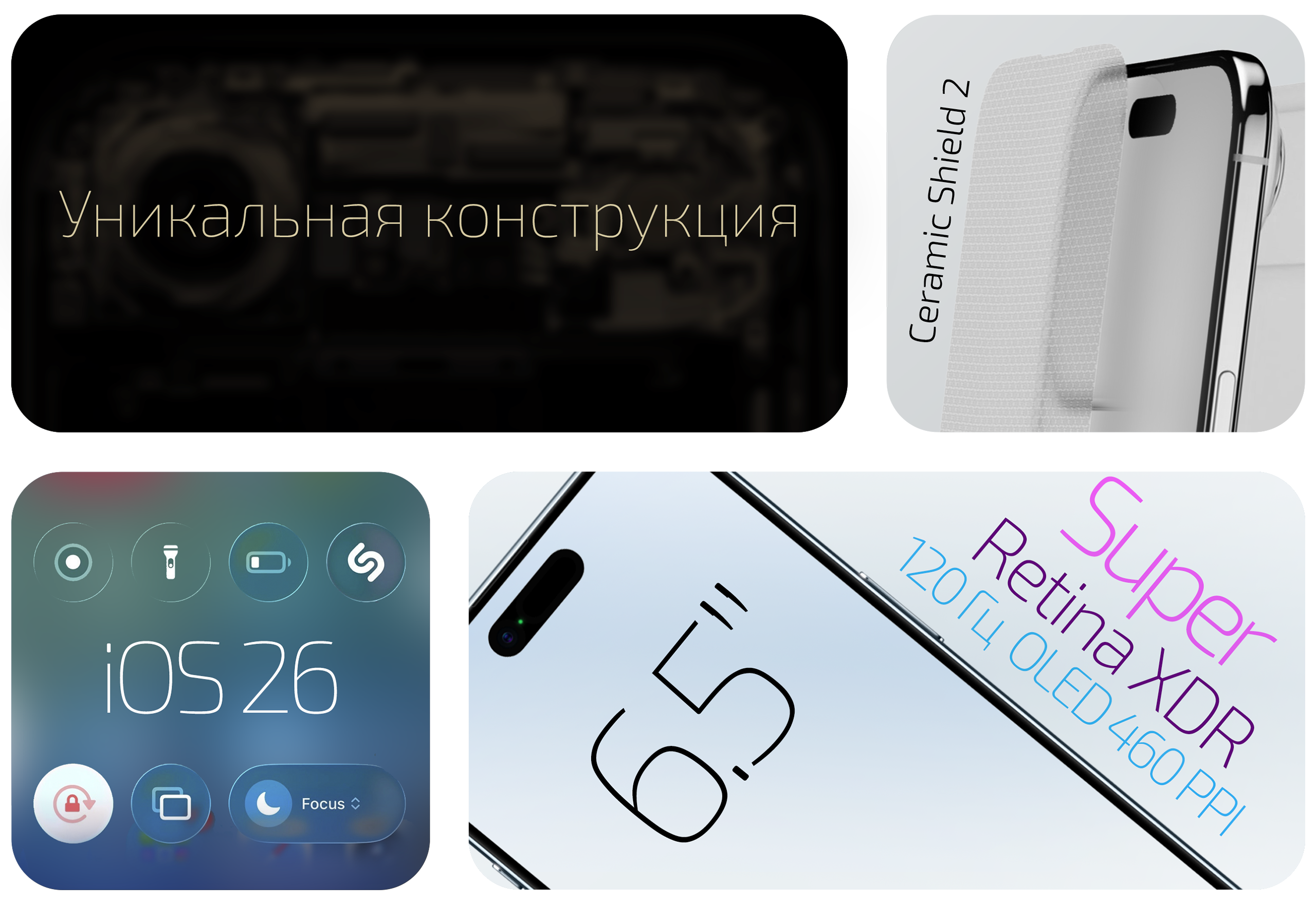 Толщина iPhone Air составляет всего 5,6 мм. Чтобы сделать его настолько тонким, в Apple разместили почти все основные компоненты в том самом выступе, где находится задняя камера. Рамка смартфона сделана из особо прочного титана, так что можно не бояться согнуть его. Кроме того, титан здесь ещё и полированный до зеркального блеска, а задняя часть изготовлена из прочного стекла Ceramic Shiled в тон. Такое же фирменное стекло, но более новое и прочное (Ceramic Shield 2) защищает дисплей iPhone Air.