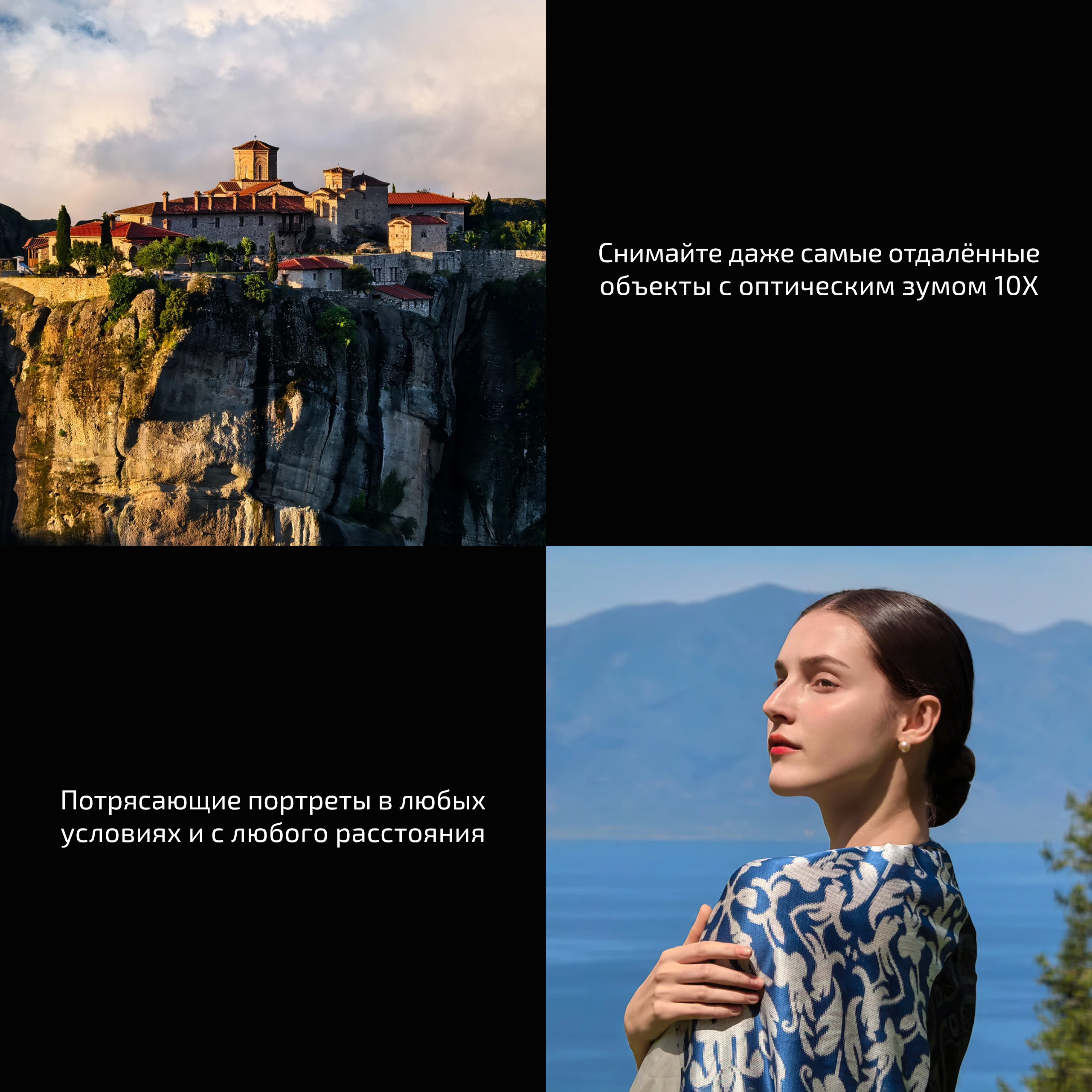 Телефон оснащён телефото-камерой с переключаемым оптическим зумом: 3,7X и разрешением 50 Мпикс. и кратностью целых 9,4X, но с разрешением 12,5 Мпикс. Интересно, что оба варианта используют один сенсор и призму для смены фокусного расстояния. Такая конструкция облегчает Смартфон и позволяет экономить место без потери качества. Это прогрессивный и смелый ход, обеспечивающий отличную детализацию и гибкость в съёмке удалённых объектов одним объективом.