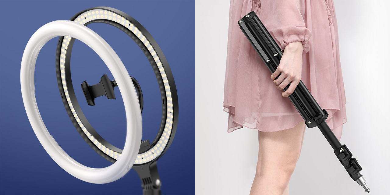 Как повысить качество видео своих стримов, не нанимая оператора и не вкладываясь в дорогостоящее студийное оборудование? Настольная кольцевая лампа Baseus призвана повысить качество видео, снятого на фронтальную камеру смартфона,. Она поставляется с трёхсекционным напольным триподом, максимальная высота которого составляет 160 см.