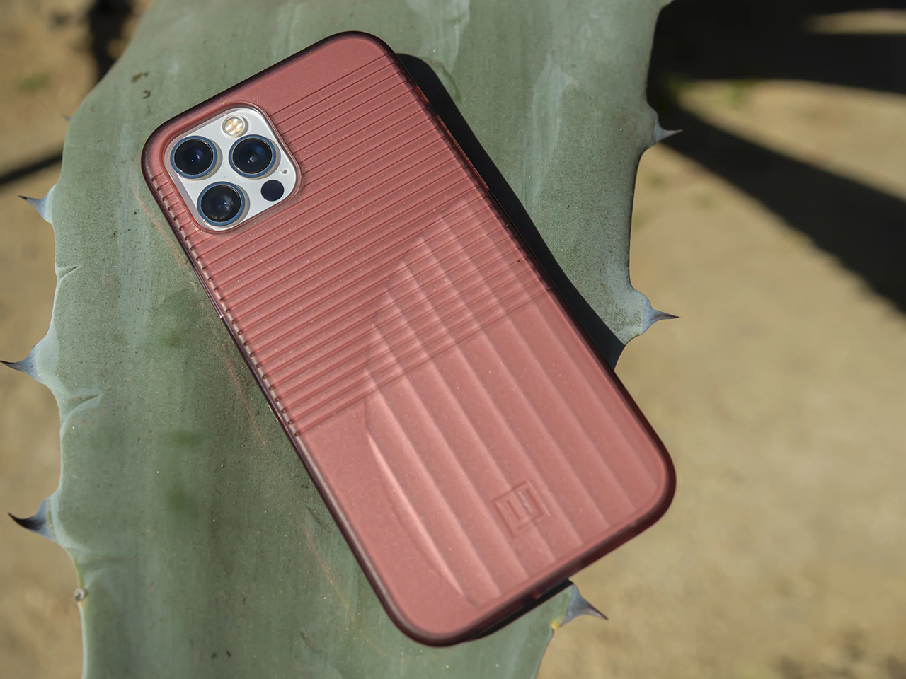 Лёгкий и прочный полупрозрачный чехол от UAG, практически не добавляющий смартфону лишний вес. Ребристая текстура задней части позволяет комфортнее держать телефон и снижает вероятность случайно выронить его. Аксессуар не препятствует беспроводной зарядке и не делает использование смартфона менее комфортным, а продуманная конструкция накладок на кнопки позволяет также легко нажимать их, как и без чехла.