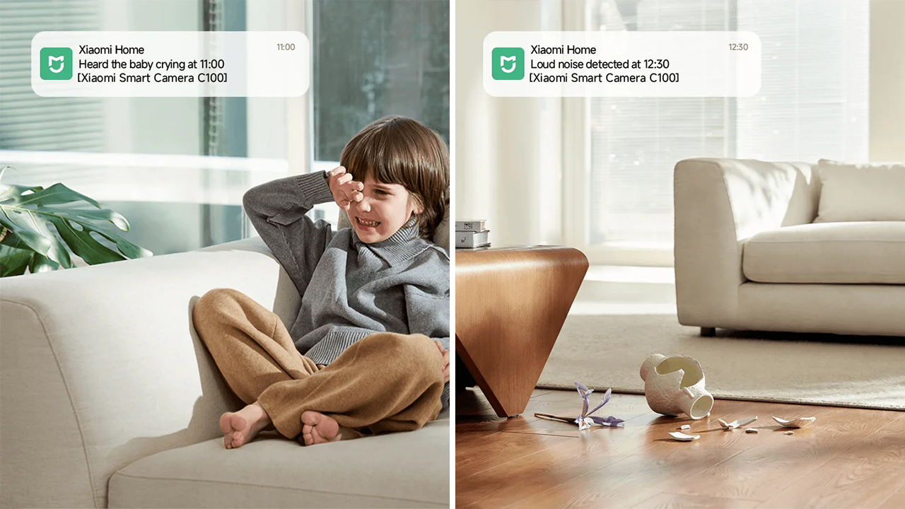 Xiaomi Smart Camera C100 подключается к домашней сети по стандарту Wi-Fi 6, что гарантирует стабильное соединение и быструю передачу данных, а также поддерживает сопряжение по Bluetooth 5.2. А полное управление камерой доступно через удобное приложение Mi Home. Кстати, именно туда будут поступать уведомления в те моменты, когда камера при помощи алгоритмов на базе ИИ заметит важные события. Например, она способна распознать плач ребёнка, зафиксировать громкий шум или обнаружить чужого человека.